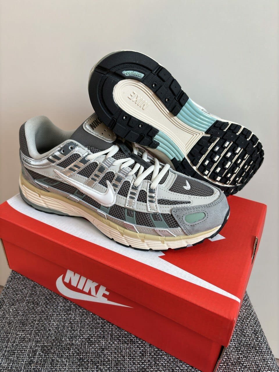 Купить Кроссовки NIKE 45р(29см), цвет серебристый/серый/зелёный
