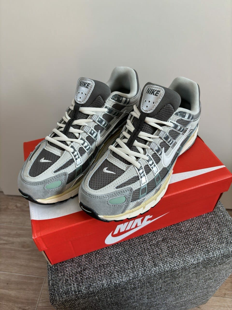 Кроссовки NIKE 45р(29см), цвет серебристый/серый/зелёный интересное: