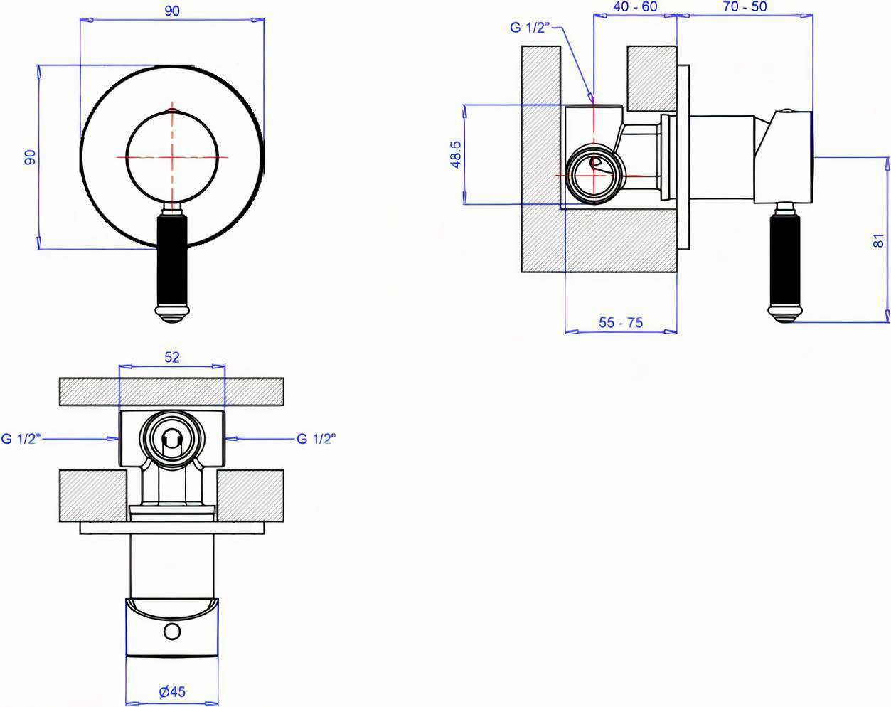 Cezares Встраиваемый смеситель для душа Cezares APHRODITE-DIM2-03/24-Bi