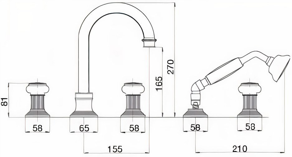 Смеситель для ванны Kaiser Classic 16055B универсальный Хром