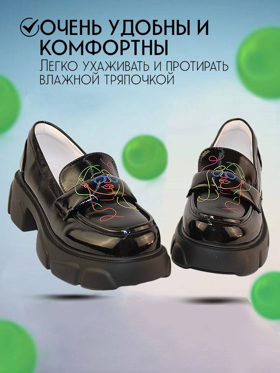 Туфли-лоферы Школьные для девочек подростков арт.D408-H07-1 черная лаковая кожа (35(22.5 см))
