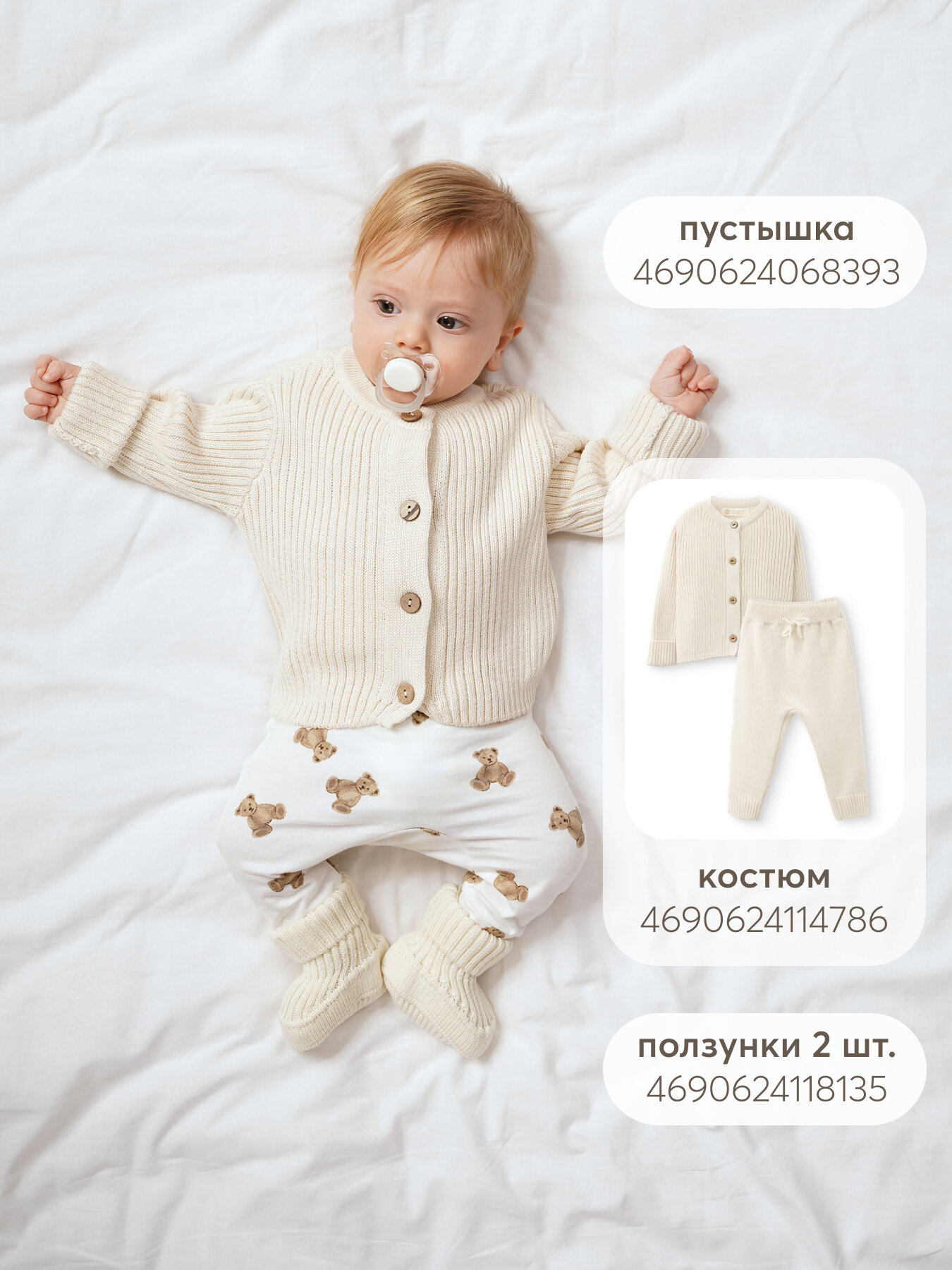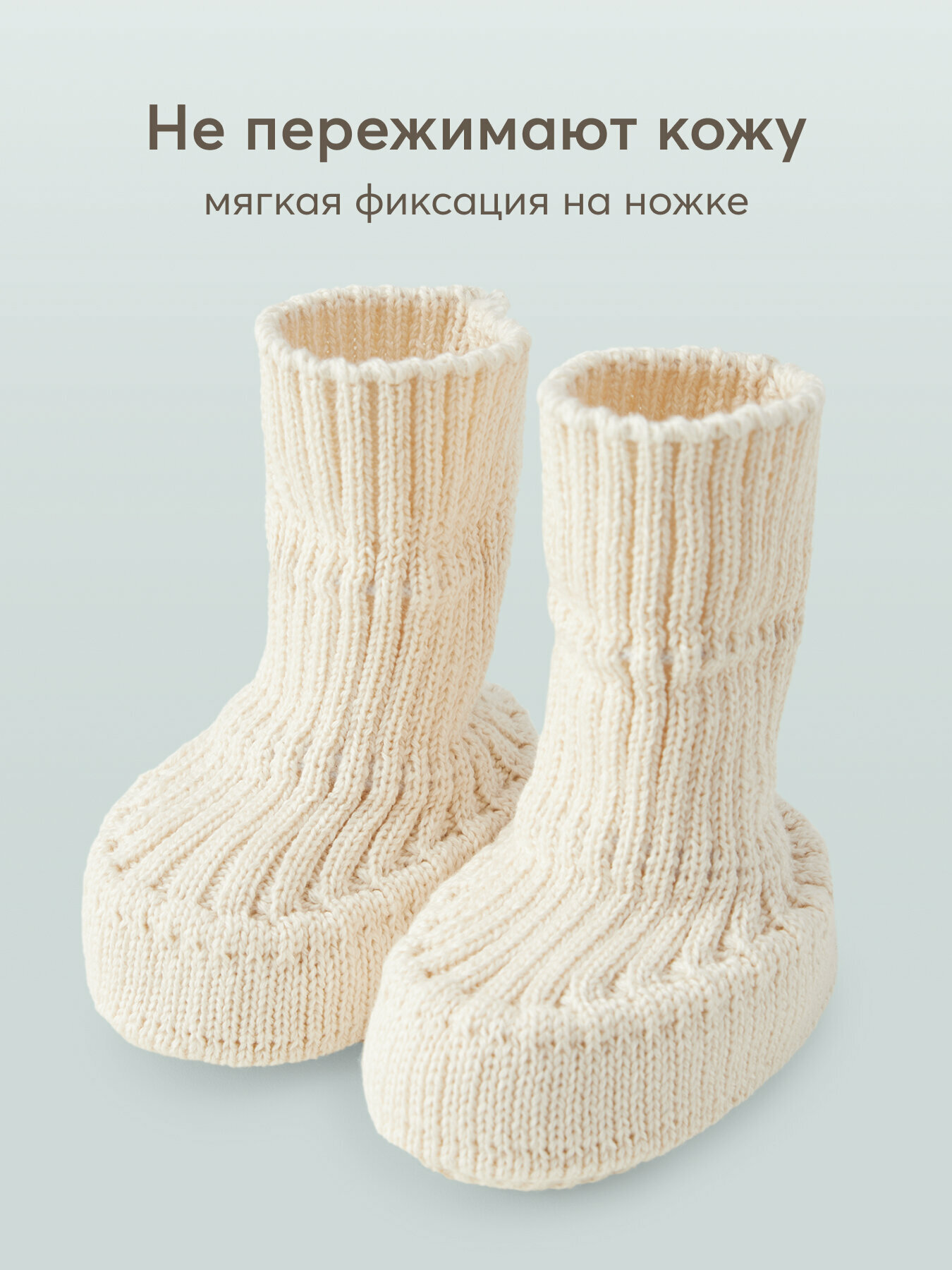 88521, Пинетки для новорожденных Happy Baby, носочки для новорожденных вязаные, бежевые, размер 9-10