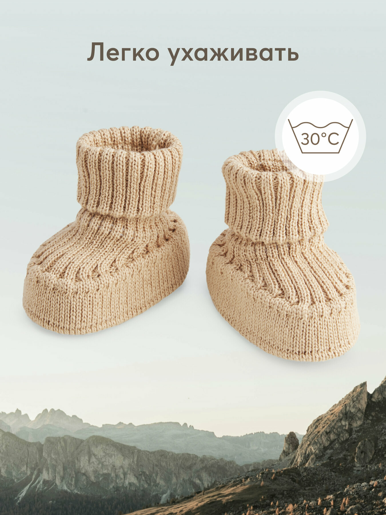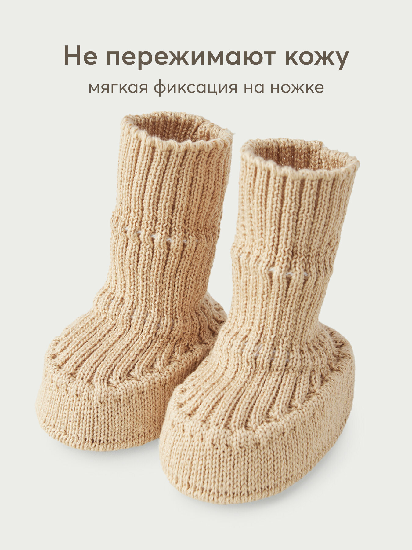 Сохранить88521, Пинетки для новорожденных Happy Baby, носочки для новорожденных вязаные, бежевые, размер 11-12 интересное: