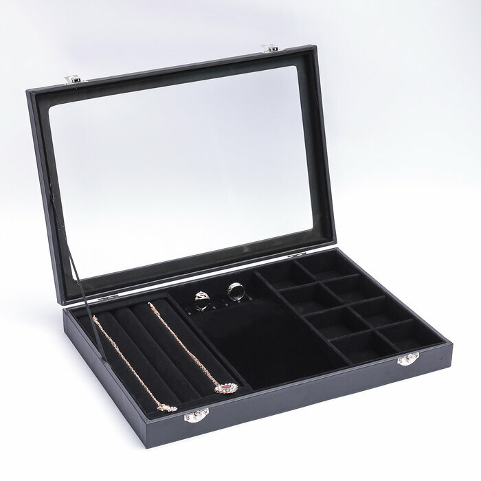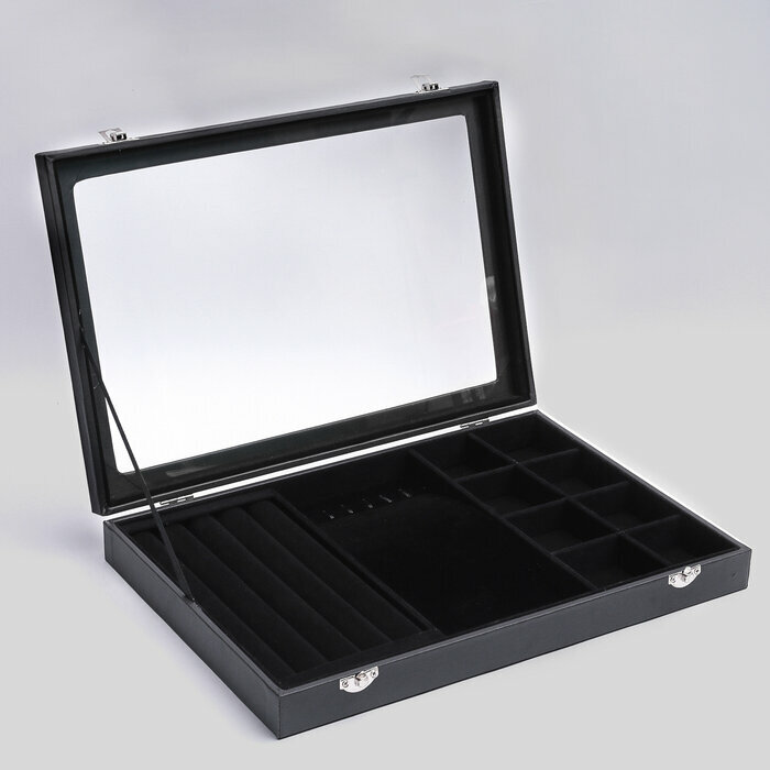 Купить Queen fair Подставка для украшений «Шкатулка» 4 полосы, 6 крючков, 8 ячеек, стеклянная крышка, цвет чёрный