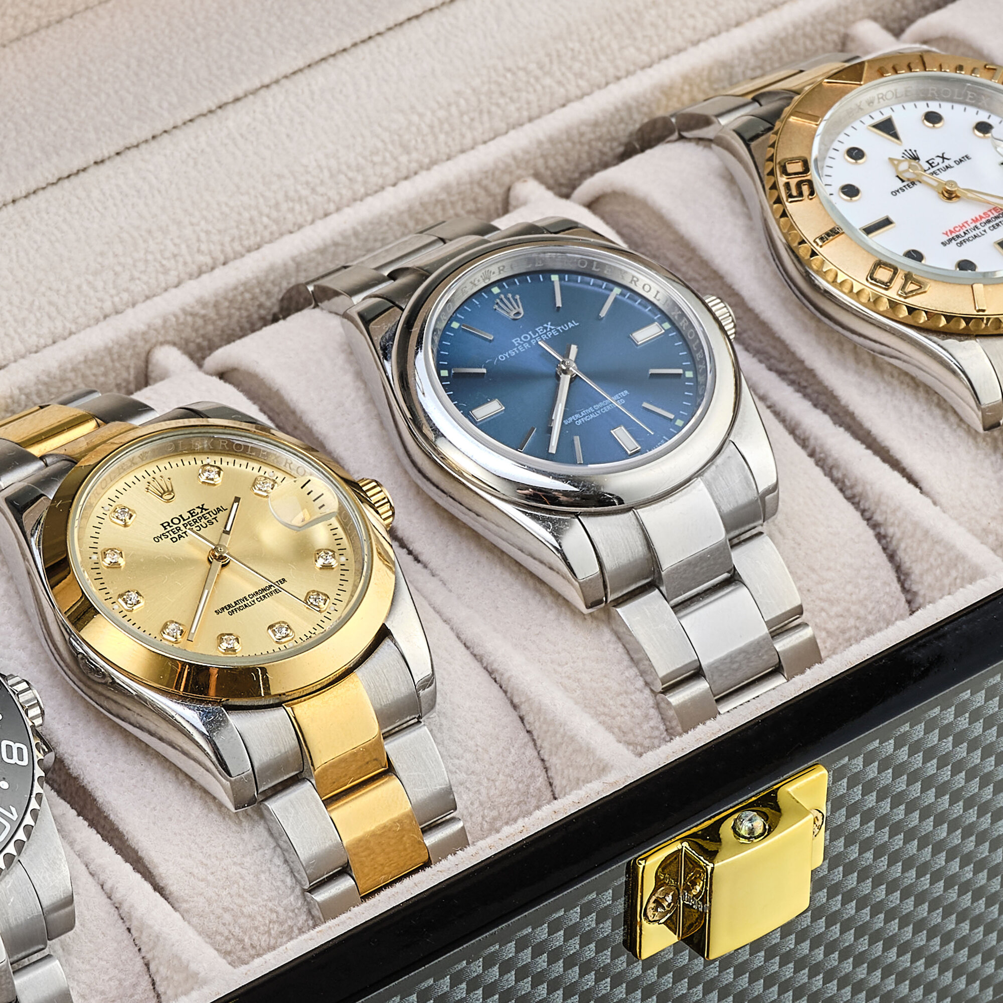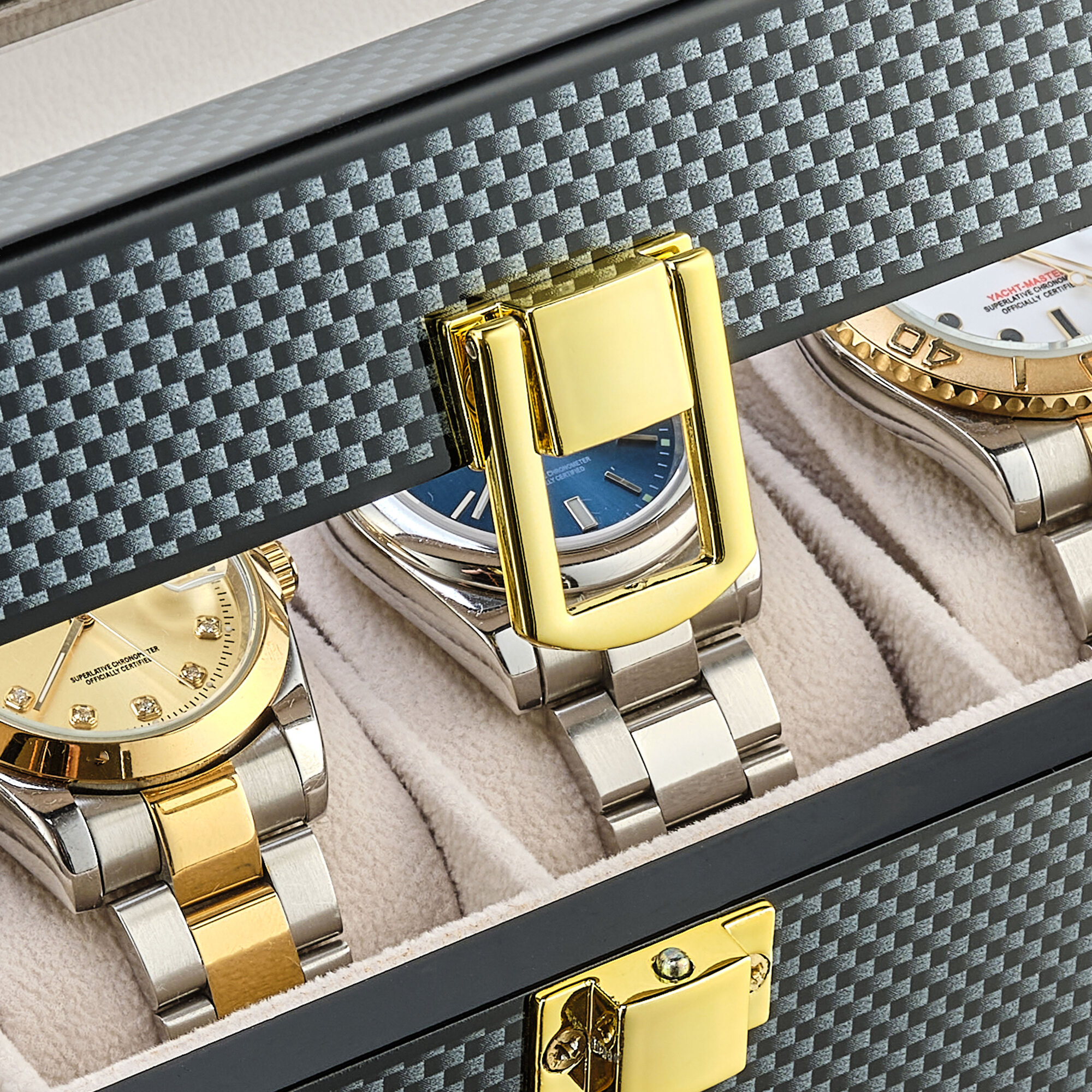 Шкатулка большая двухуровневая для хранения 10 часов, 5 очков и украшений CloxBox W119 Черная
