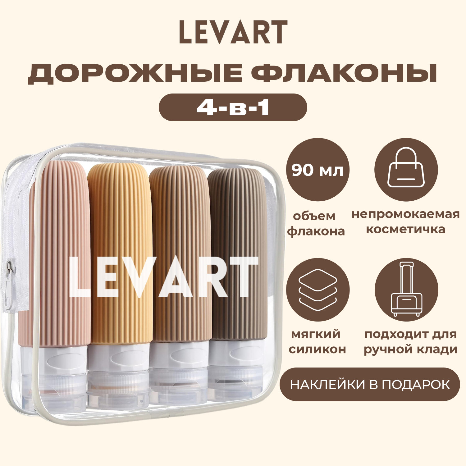 Дорожный флакон LEVART, 4 шт., 90 мл, размер L, бежевый