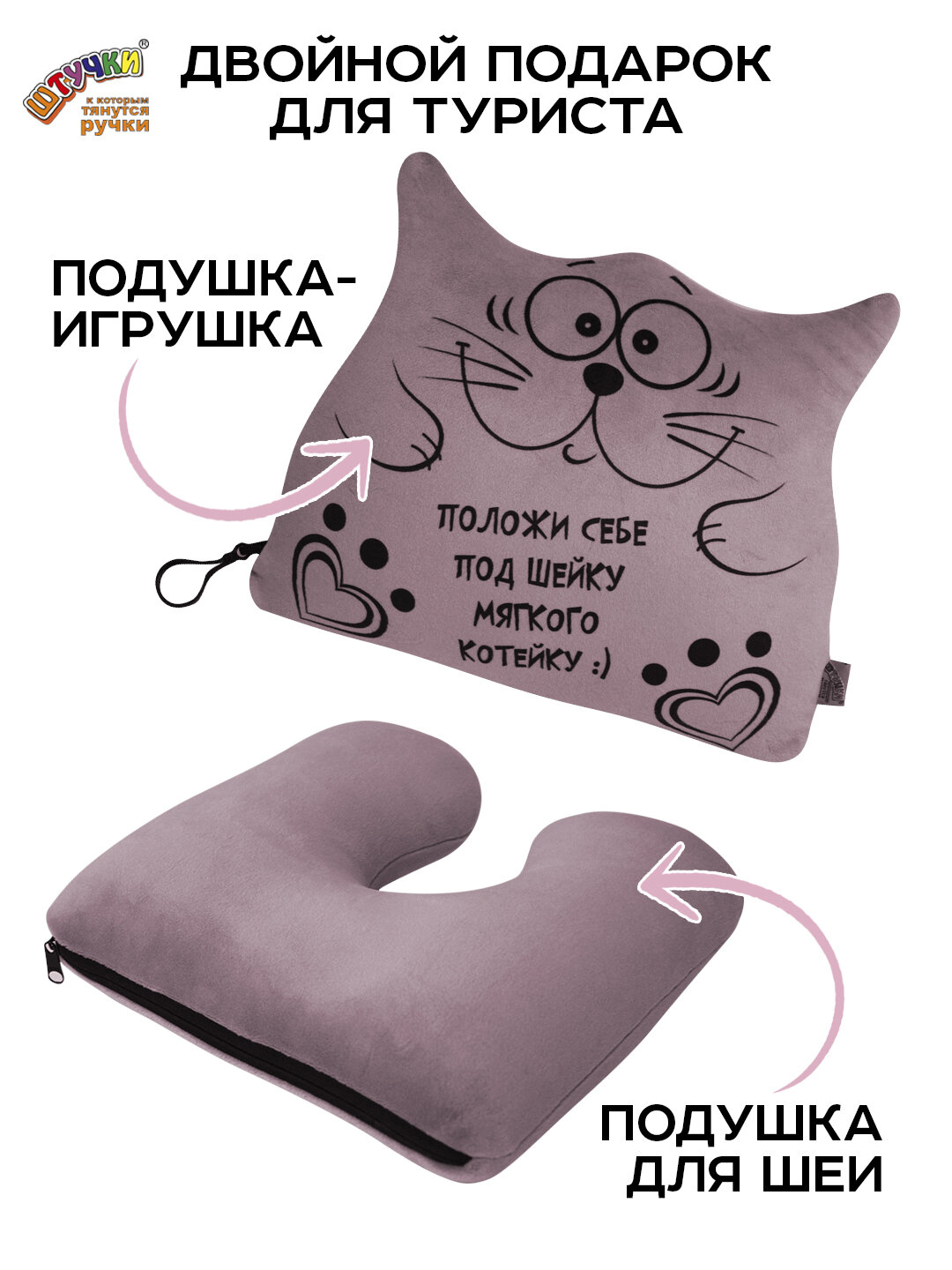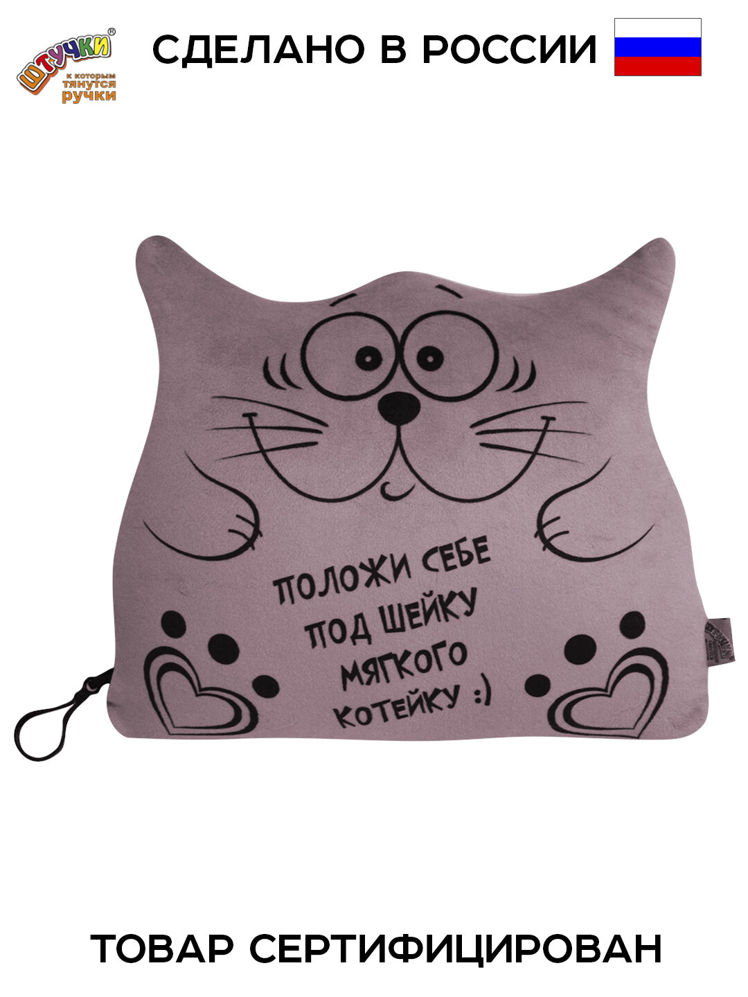 Купить Подушка для шеи-антистресс Штучки, к которым тянутся ручки Трансформер Котик, сиреневый
