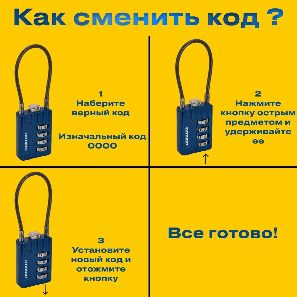 Замок навесной кодовый Аллюр ВС1КТ-30/3 (синий с тросиком)