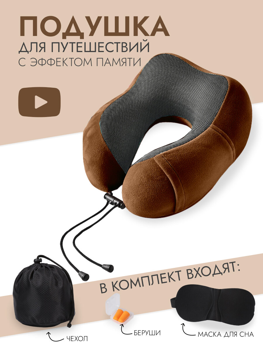 Подушка для путешествий CURSUS для шеи с эффектом памяти, дорожная в самолет, коричневая интересное: