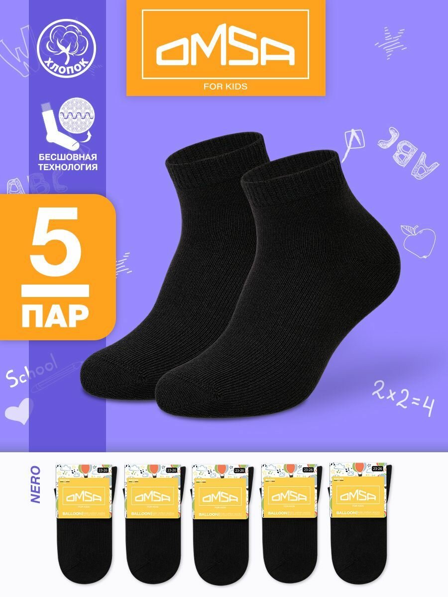Носки детские OMSA kids Calzino 21C02, для мальчика, для девочки, короткие, цветные, хлопок , набор 5 пар, цвет Nero, размер 23/26