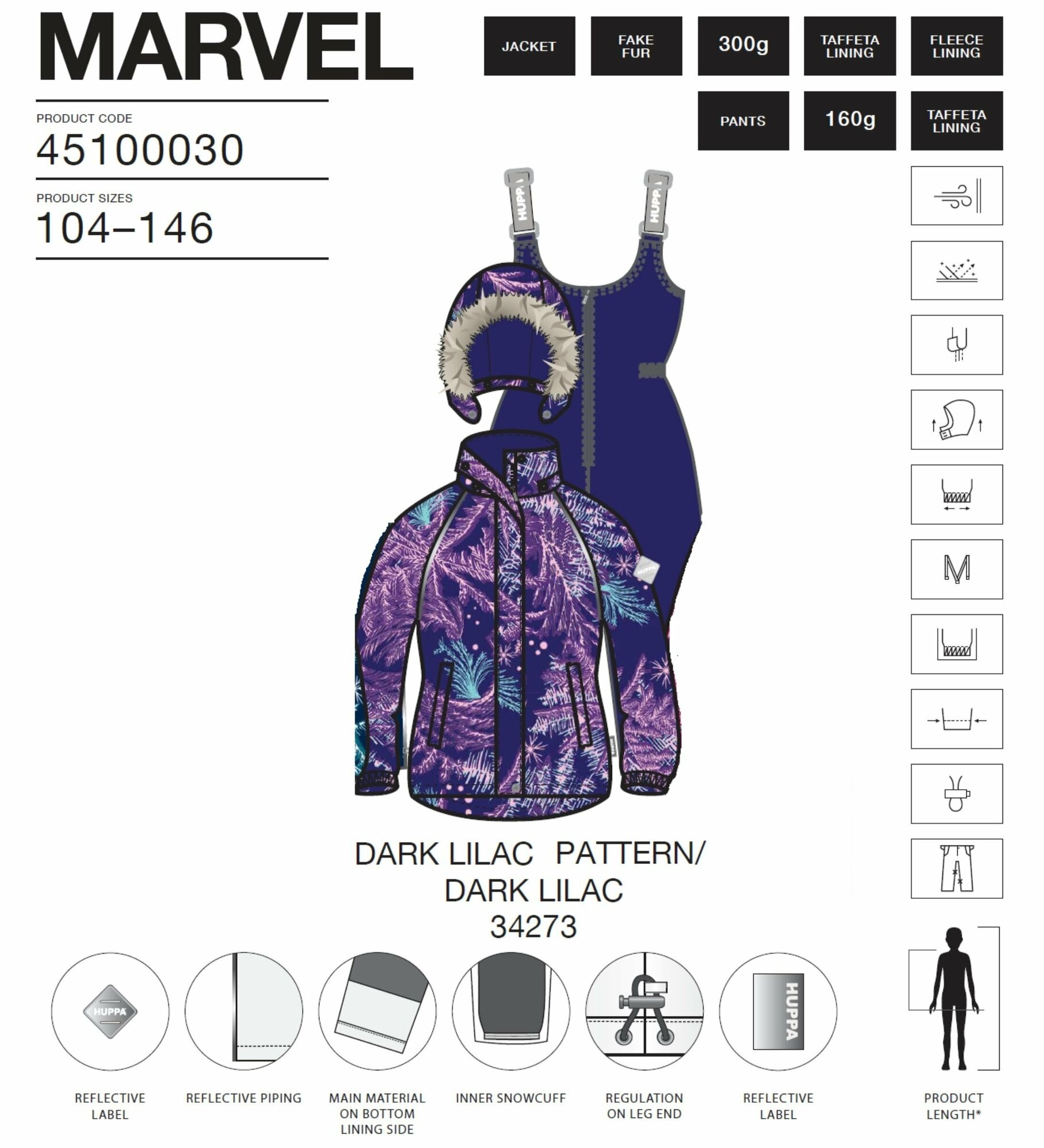 Комплект (куртка+полукомбинезон) для девочки HUPPA MARVEL тёмно-лилoвый с принтом