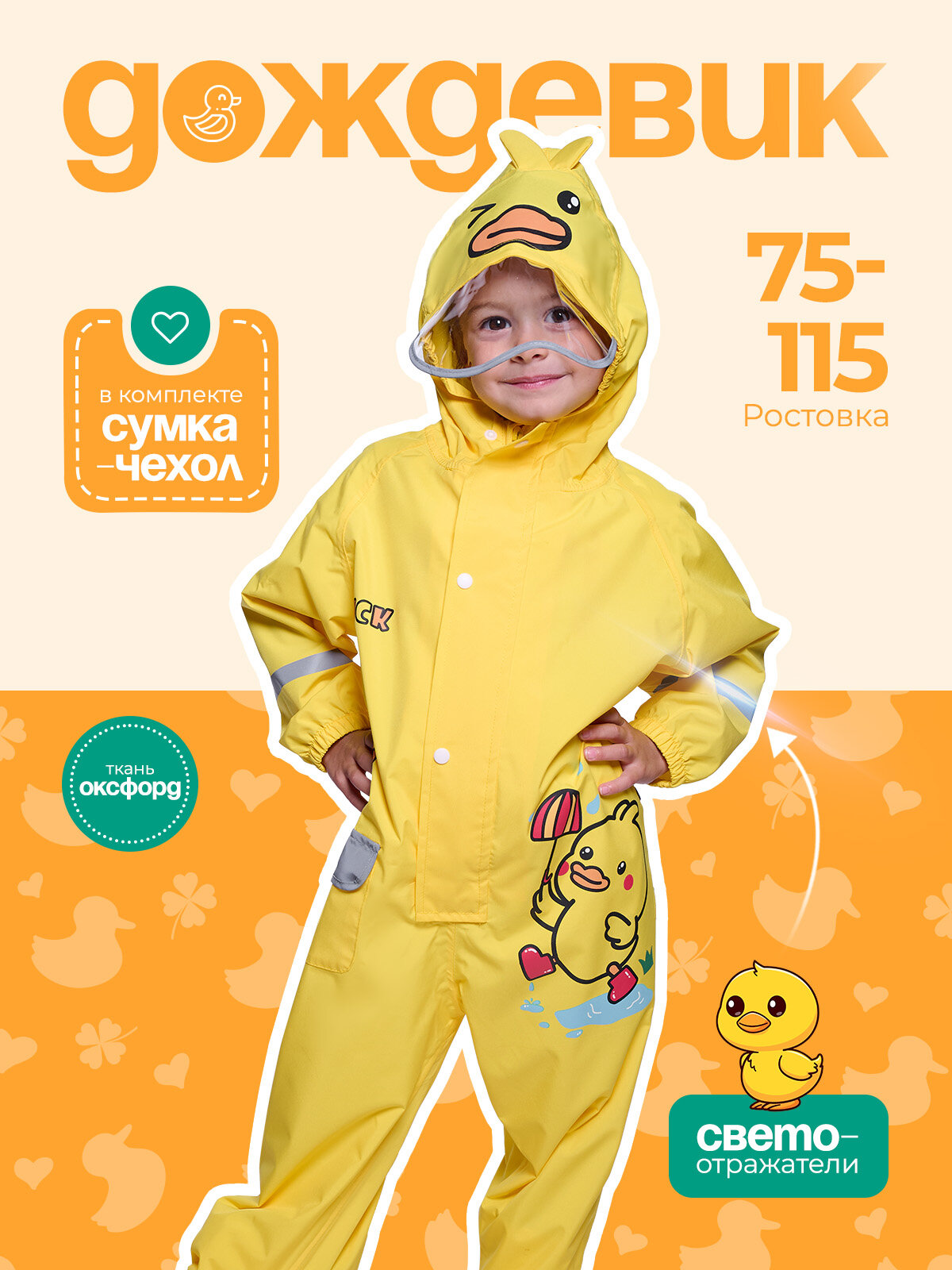 СохранитьЯркий желтый комбинезон-дождевик для детей "Утенок" от бренда Cozy&Dozy, размер L интересное:
