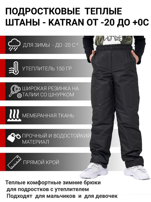 Детские зимние мембранные брюки для девочки, для прогулок и спорта KATRAN Frosty (мембрана, черные), Черный, Размер: 164-170