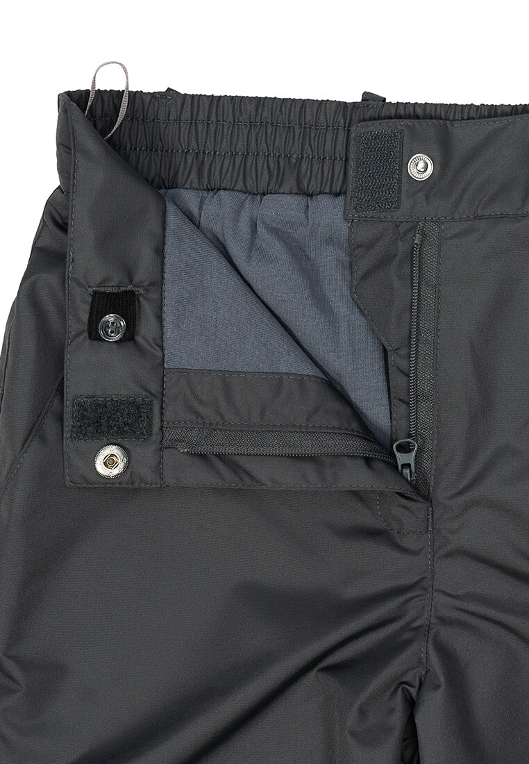 | Дополнительная информация | ● Растущие брюки - увеличение длины брюк на 1 размер ● Брюки без утеплителя ● Застежка на молнию и кнопку ● Пояс с резинкой по спинке и дополнительной внутренней регулировкой объема по талии ● Карманы ● Ширина брюк внизу регулируется хлястиком с липучкой ● Световозвращающие элементы |