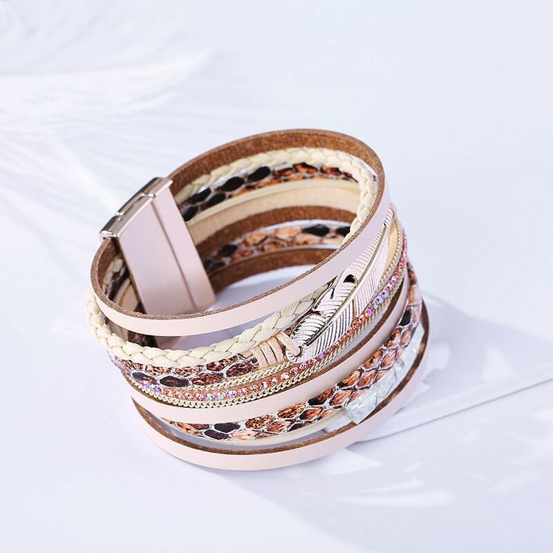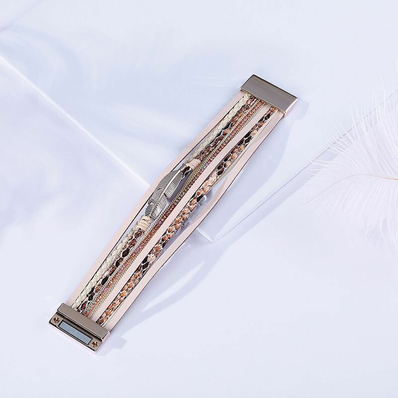 Купить Женский браслет на руку из кожи широкий, с магнитным креплением, повседневный, перо, цвет золото 20 см