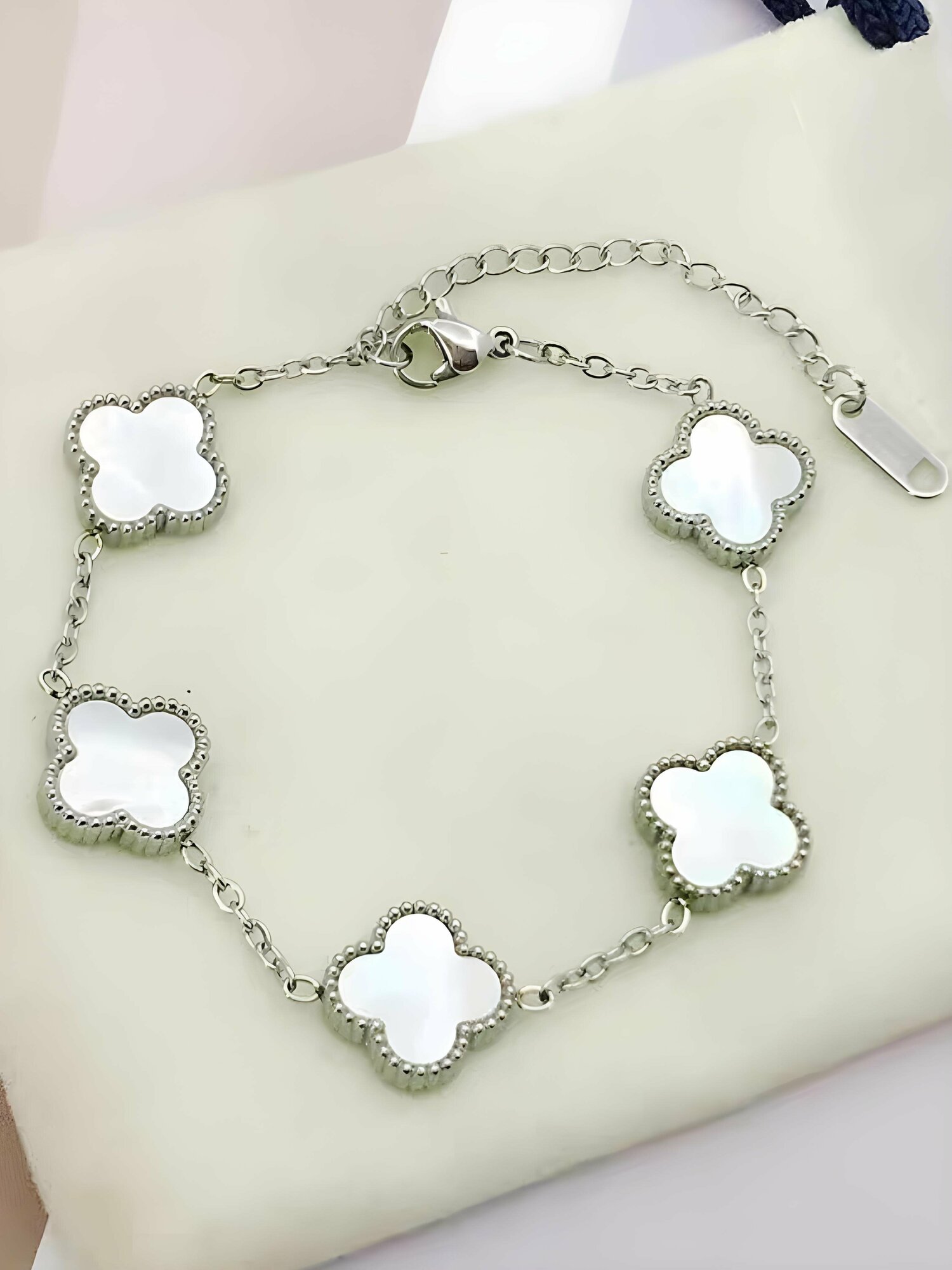 Браслет женский на руку бижутерия Клевер с перламутром интересное: