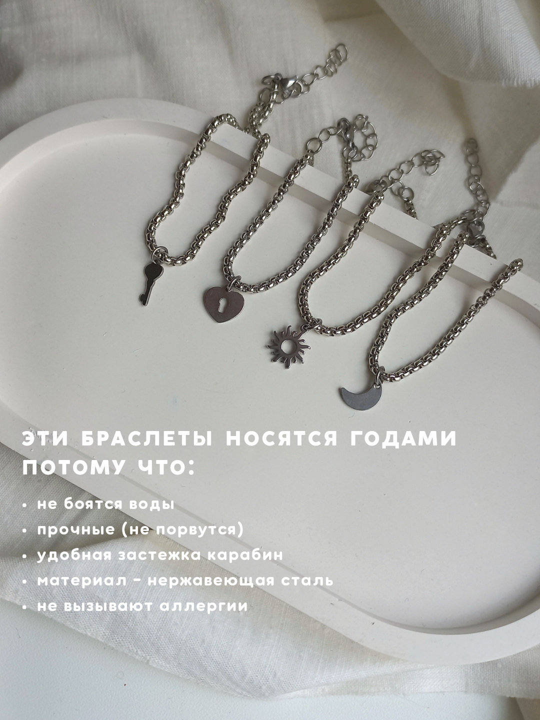 Ниже Вы можете прочитать отзывы на Парные браслеты на цепочке "солнце и луна" из нержавеющей стали подарочный набор на годовщину/ новый год / 14 февраля, ознакомится с подробными характеристиками, посмотреть интересные обзоры и фотографии на Парные браслеты на цепочке "солнце и луна" из нержавеющей стали подарочный набор на годовщину/ новый год / 14 февраля.