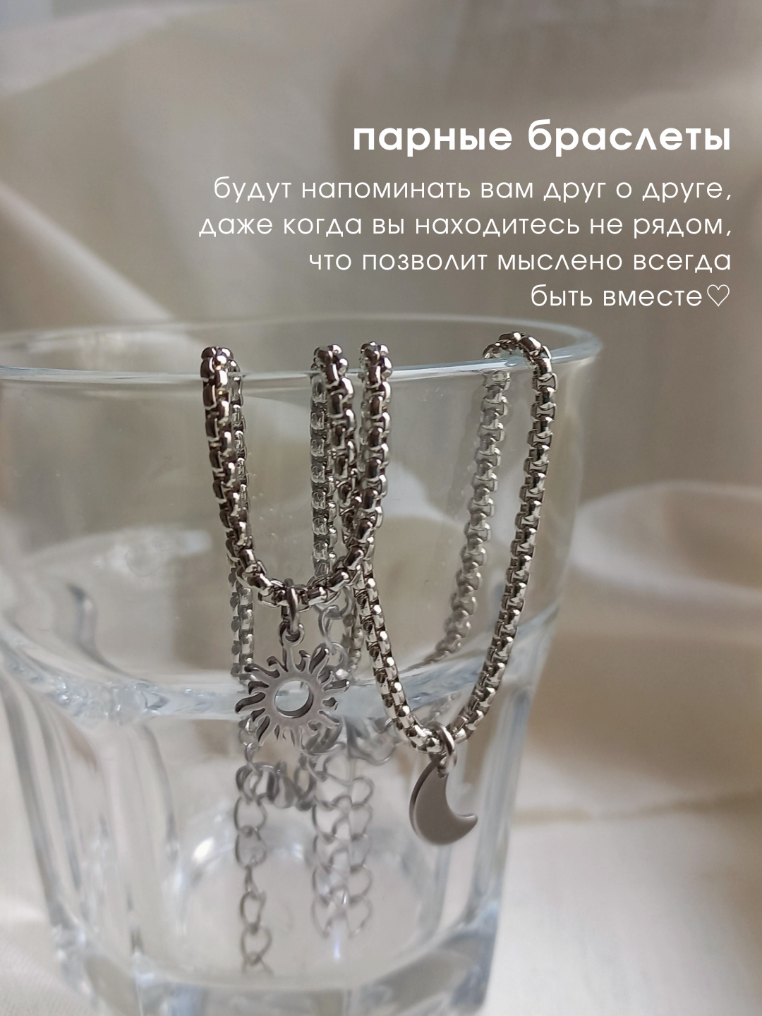 Купить Парные браслеты на цепочке "солнце и луна" из нержавеющей стали подарочный набор на годовщину/ новый год / 14 февраля