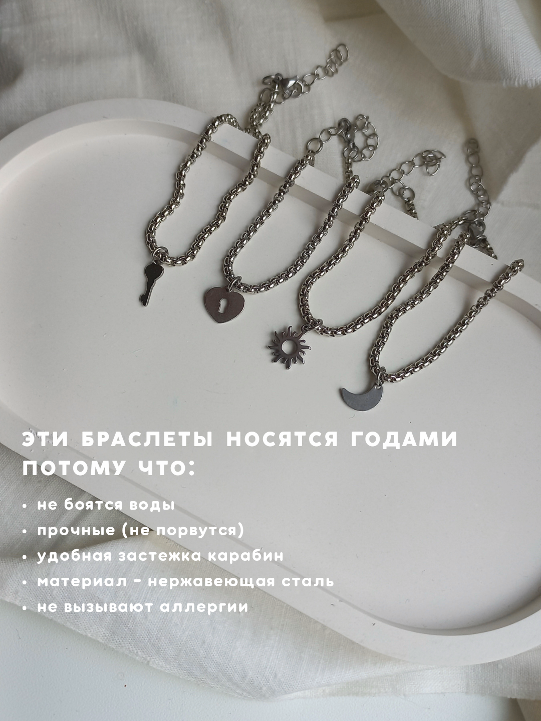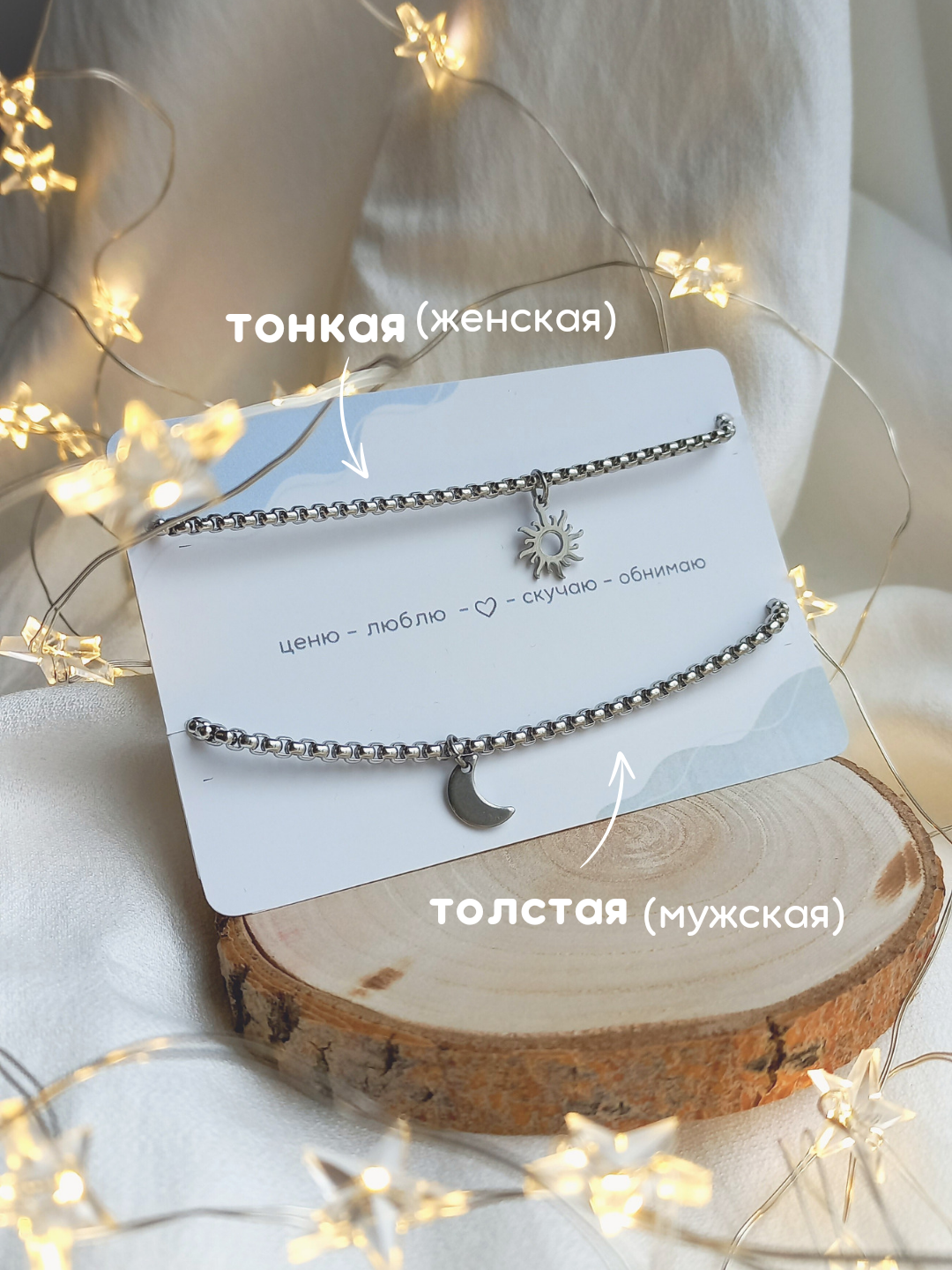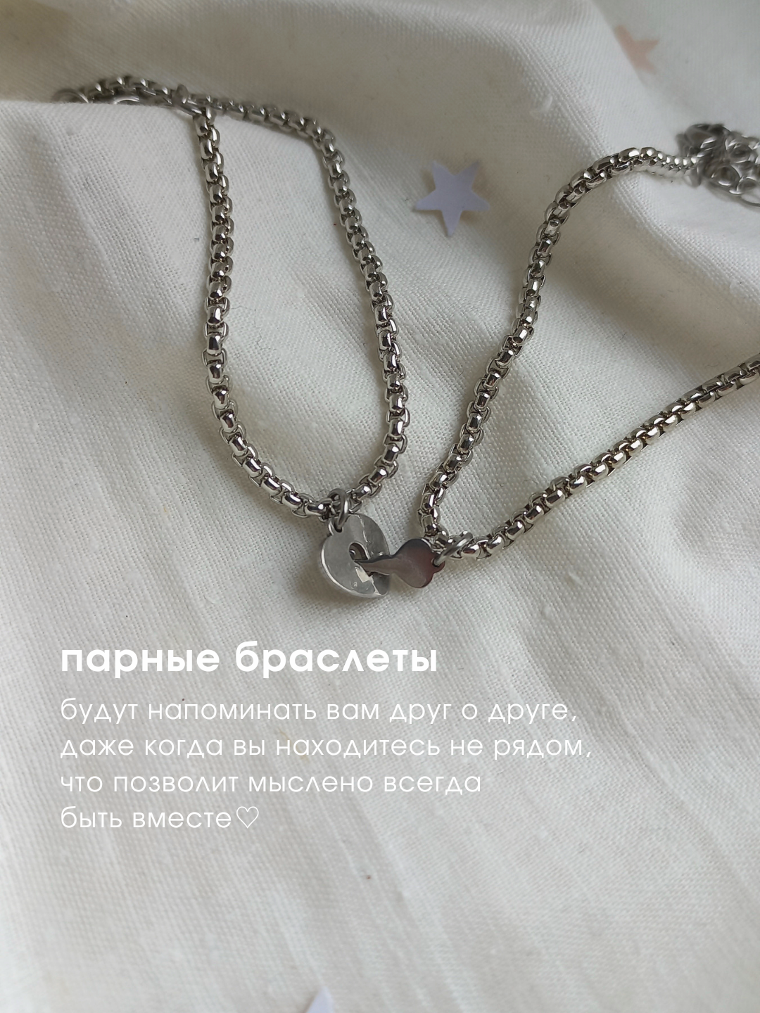 Парные браслеты на цепочке "солнце и луна" из нержавеющей стали подарочный набор на годовщину/ новый год / 14 февраля