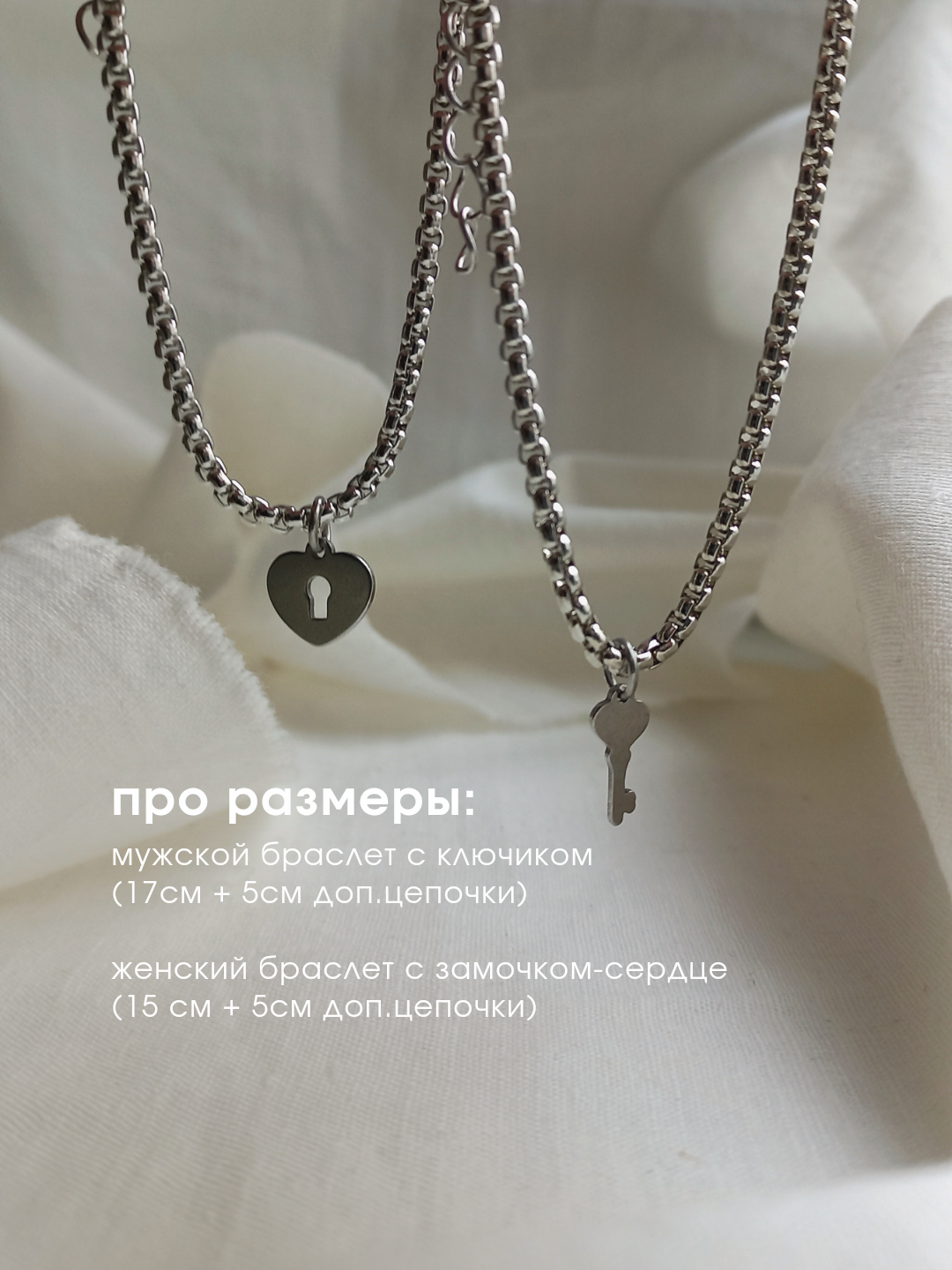 Парные браслеты на цепочке "ключик и замочек" из нержавеющей стали подарочный набор на годовщину/ новый год / 14 февраля интересное: