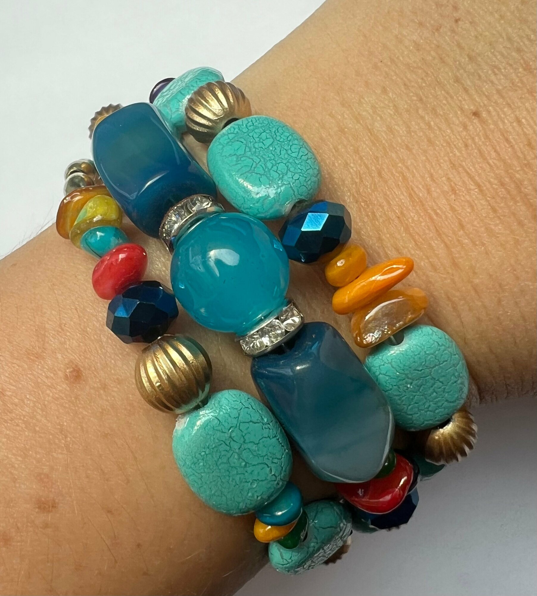 Купить Браслет из натуральных камней. Агат . Голубой.