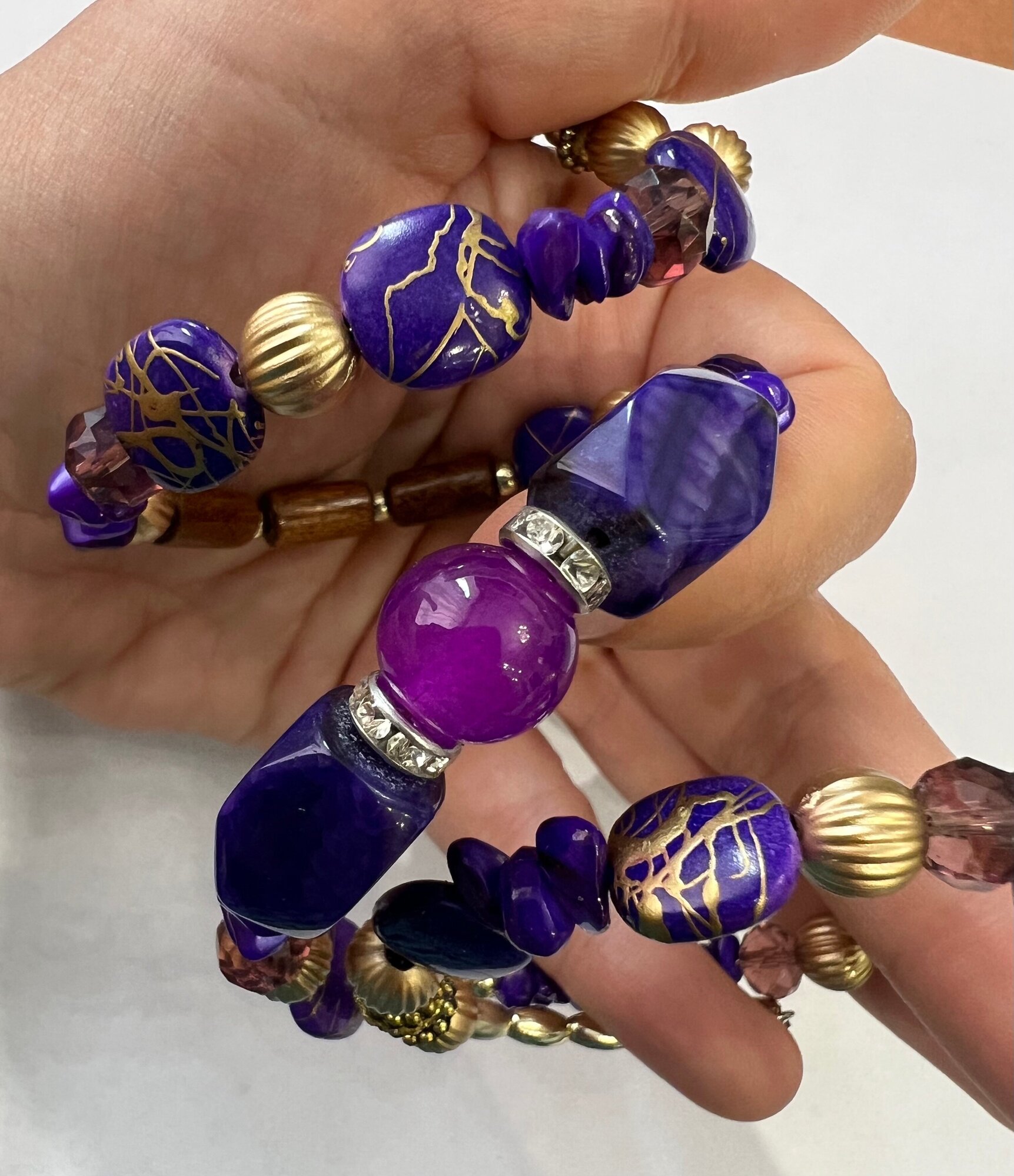 Купить Браслет из натуральных камней .Агат фиолетовый.