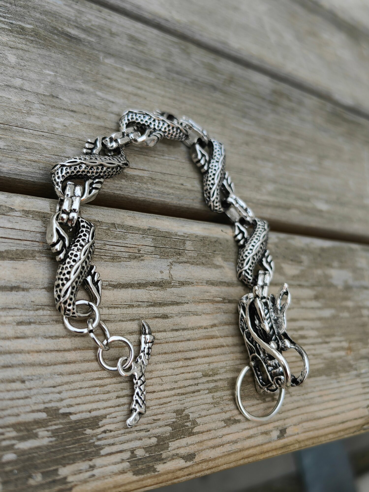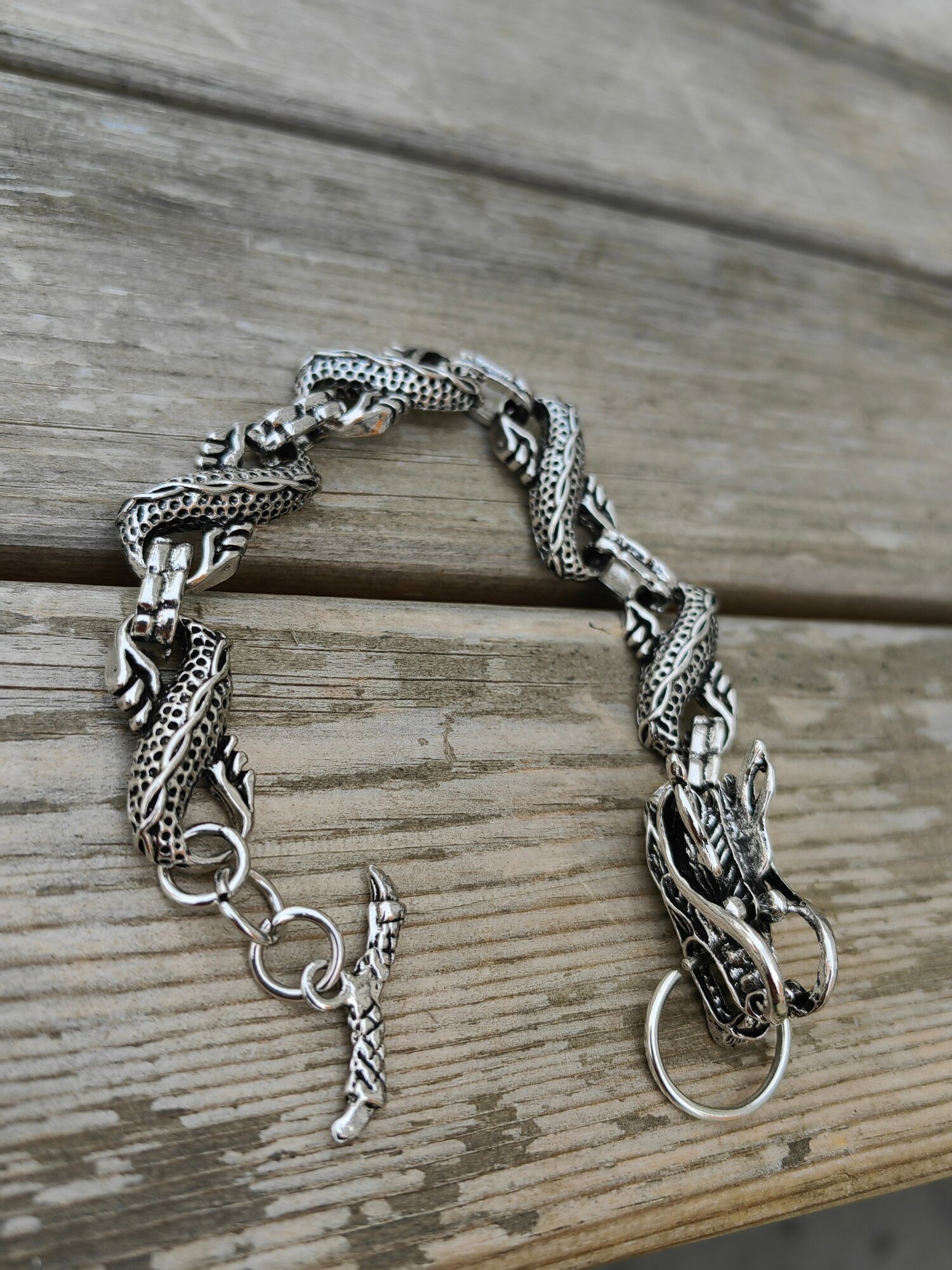 Браслет-цепочка ДРАКОН, 1 шт., размер 20 см, размер XL, диаметр 10 см, серебристый