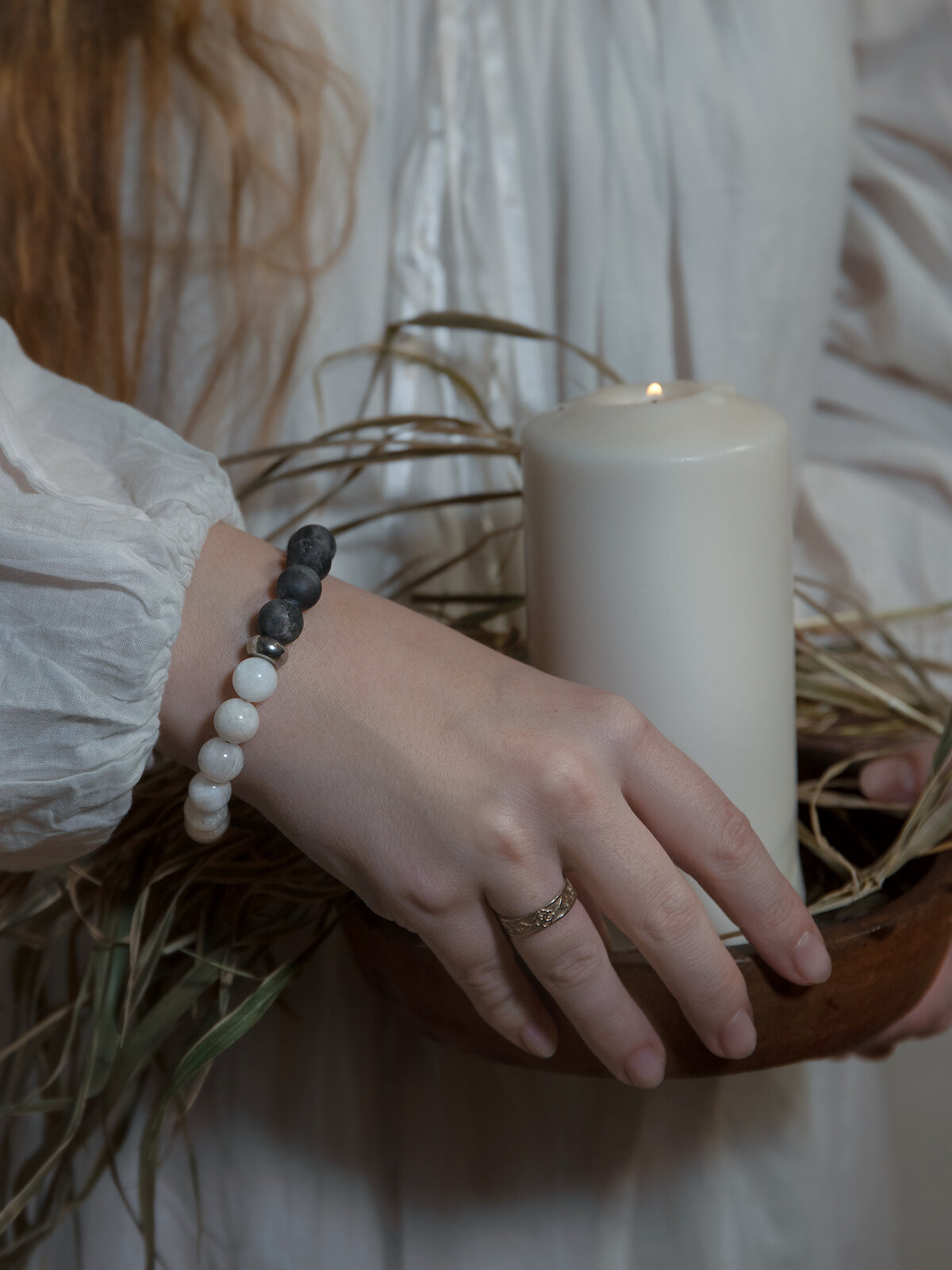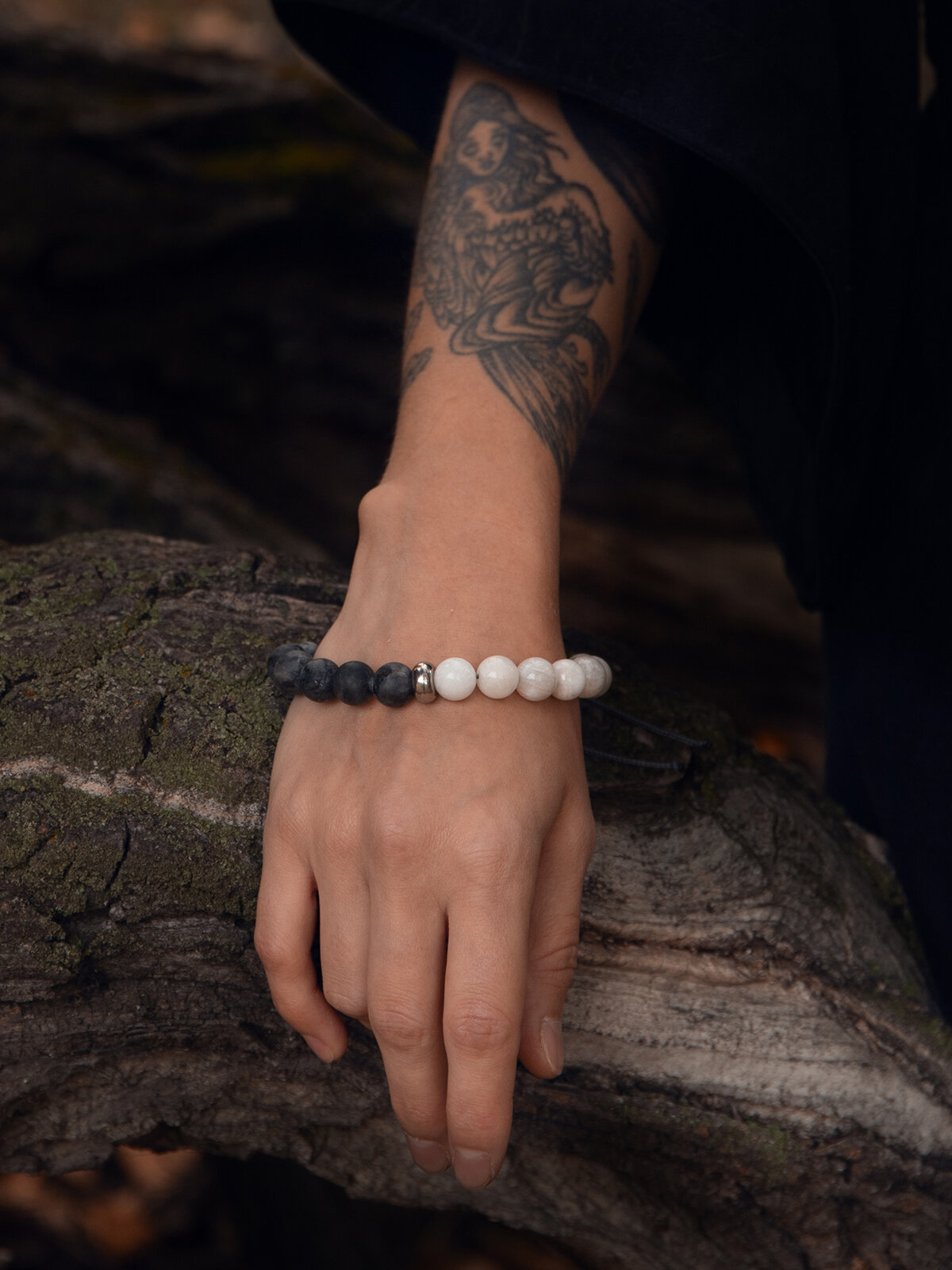 Купить Фригг - браслет мужской / женский из натуральных камней (лунный камень и лабрадорит), размер 21-24