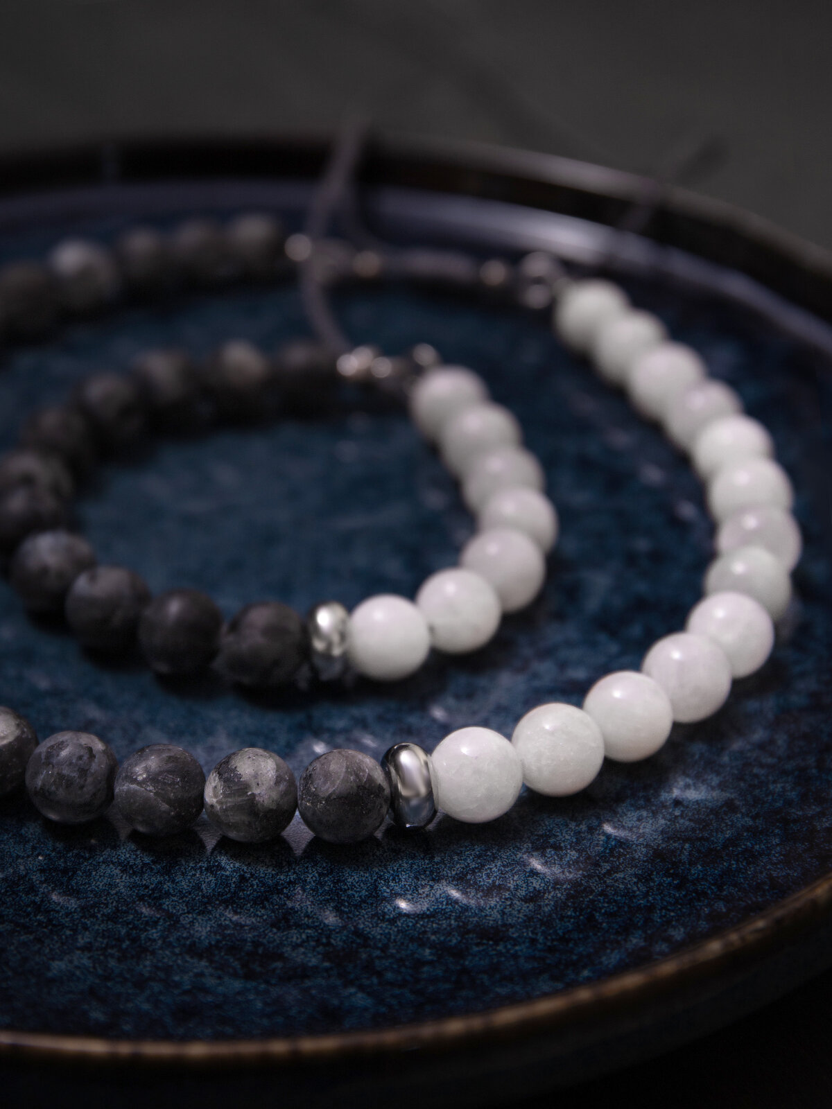 Фригг - браслет мужской / женский из натуральных камней (лунный камень и лабрадорит), размер 15-17,5