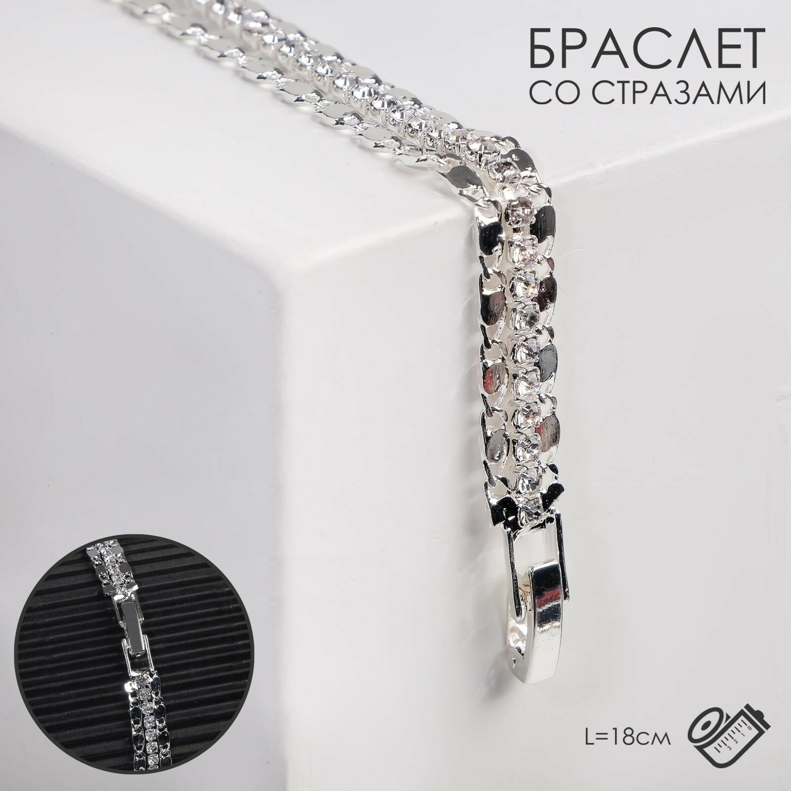 Купить Queen fair Браслет со стразами «Сияй» нить переплетением, цвет белый в серебре, 18 см