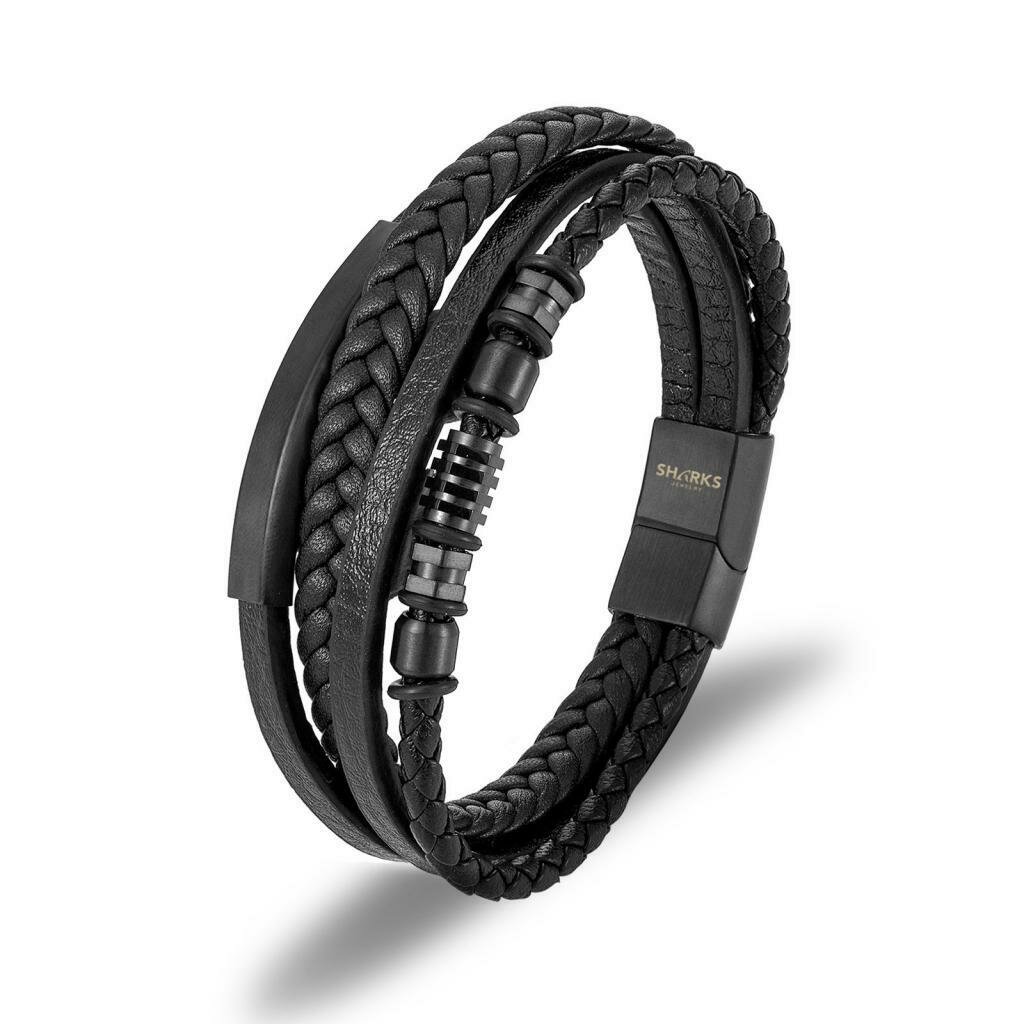 Универсальный кожаный браслет шнурок SHARKS на руку для мужчин с магнитной застежкой, Многослойный браслет из кожи и стали, 23 см