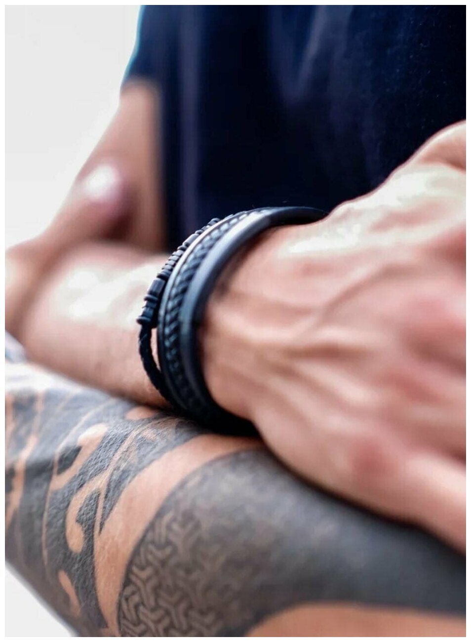 Многослойный браслет из кожи и стали, 20.5 см