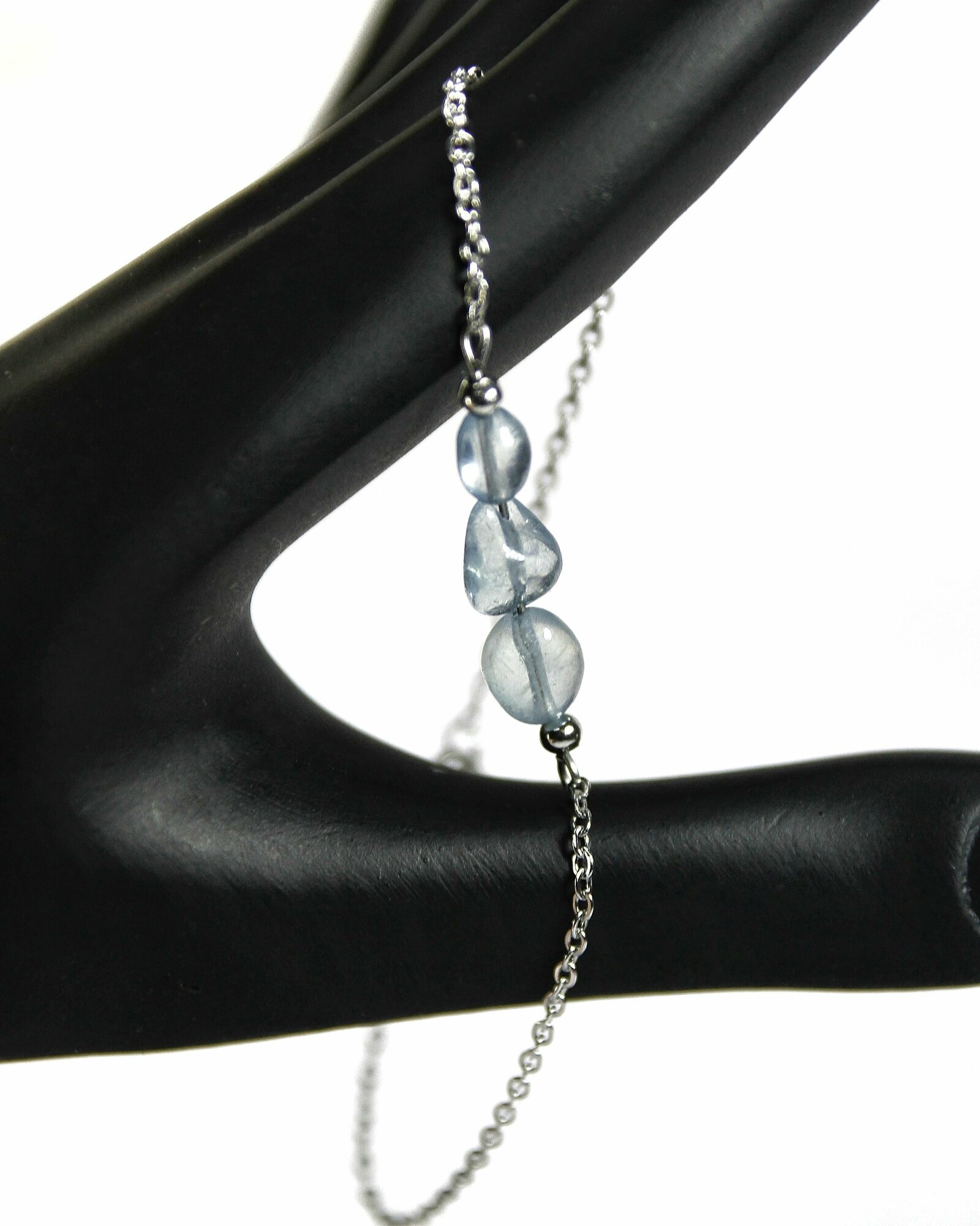 Аквамарин браслет - натуральный камень, 4-8 мм, цепочка, цвет серебро - позволяет обрести счастье интересное: