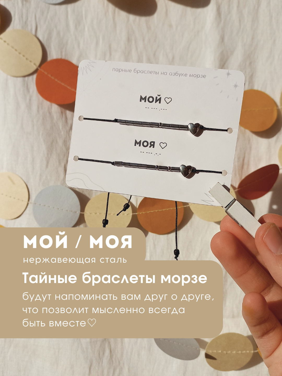 Купить Парные браслеты морзе "МОЙ ♡ / МОЯ ♡" подарочный набор на годовщину для влюбленных и друзей