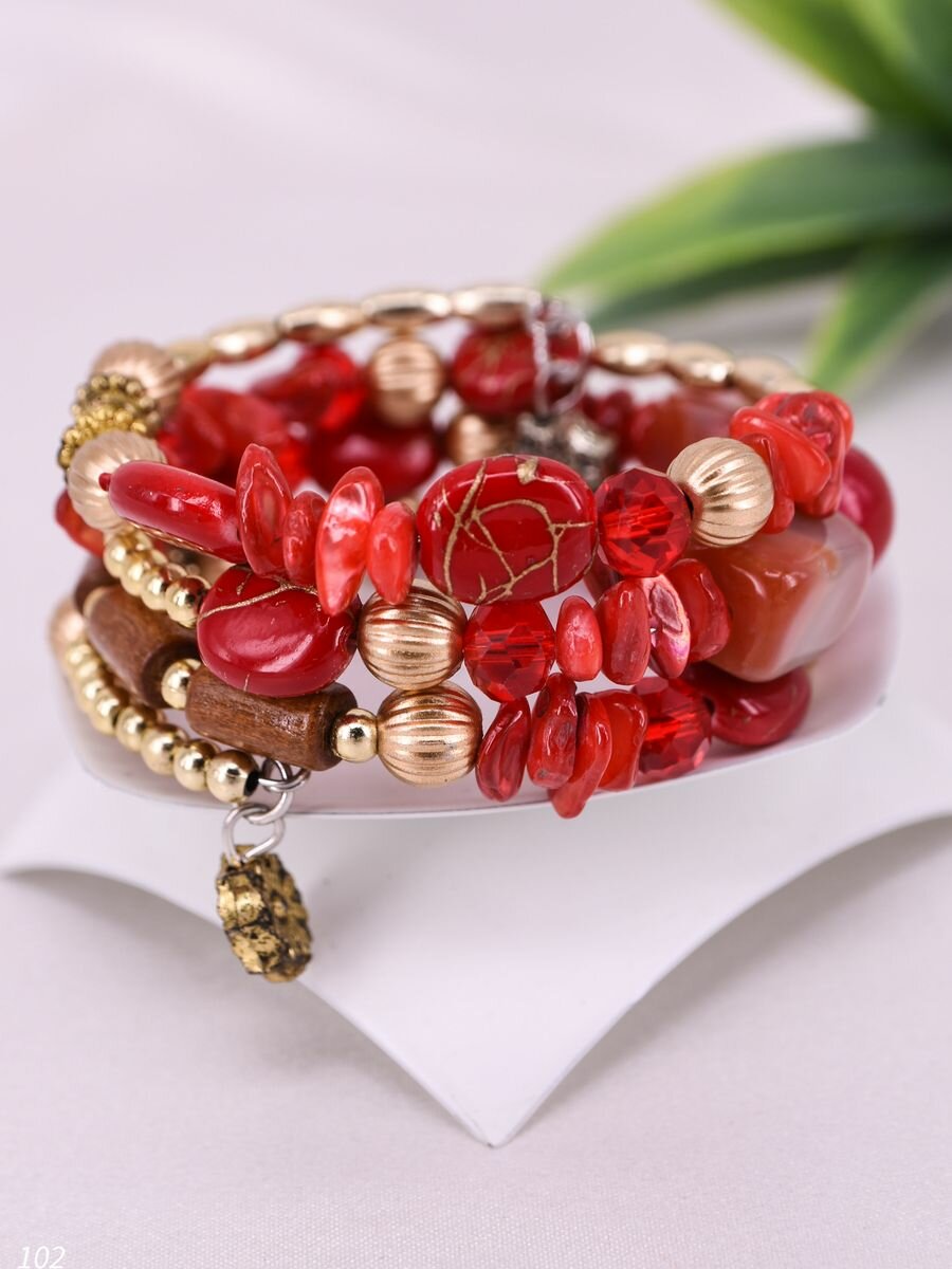 Купить Браслет 3-рядный на руку из натуральных камней кораллов и агатов/ браслет женский на руку бижутерия