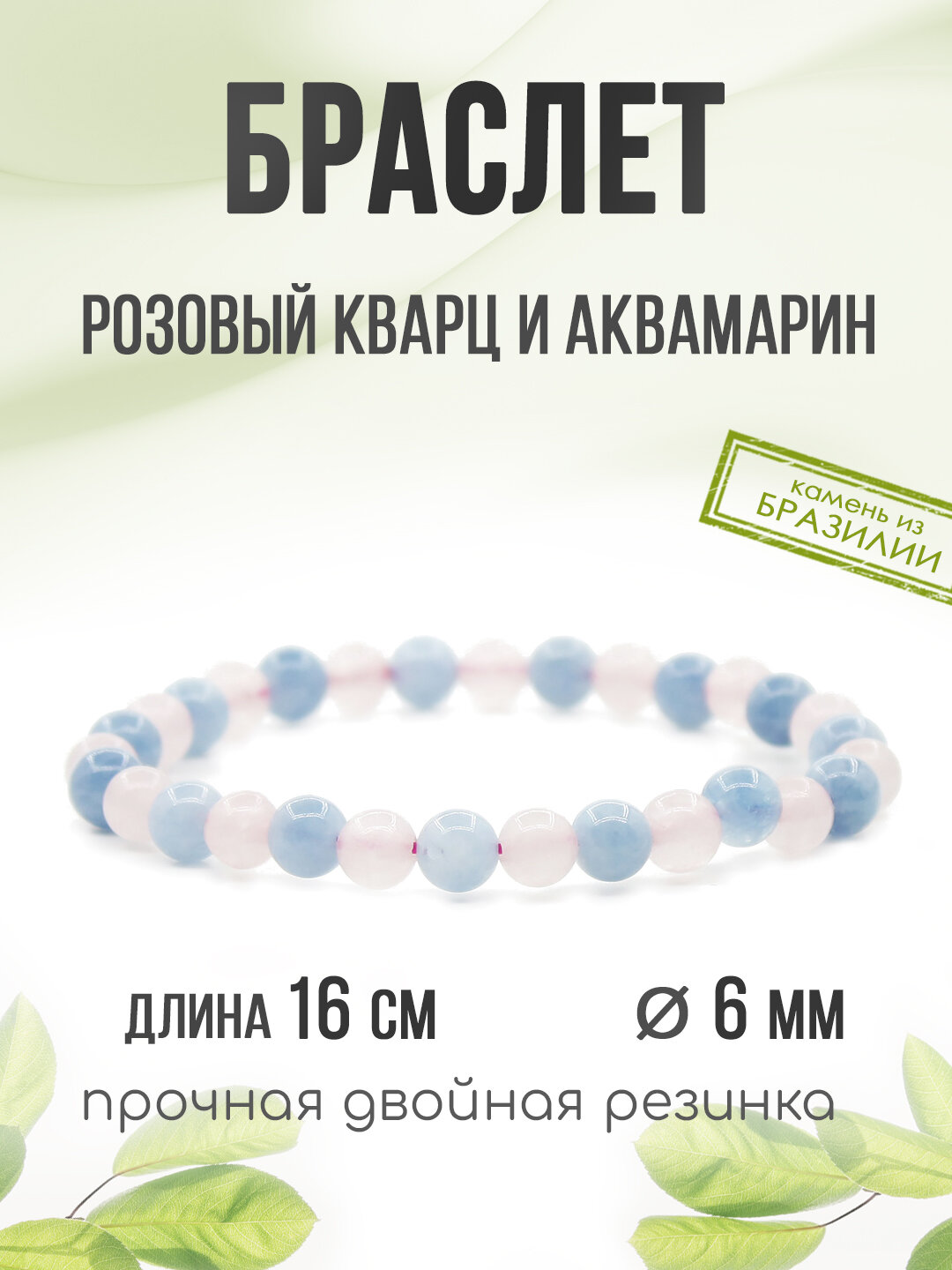 Купить Кварц розовый + кварц "аквамарин" 6мм, браслет "Классика" длина 17см