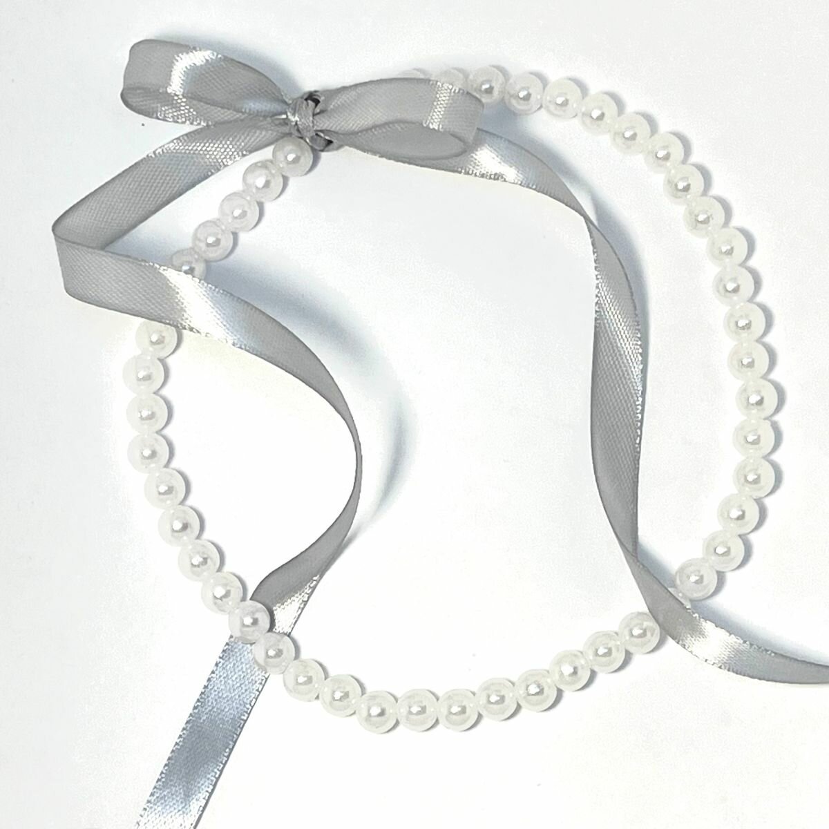 Чокер жемчуг с серым бантом