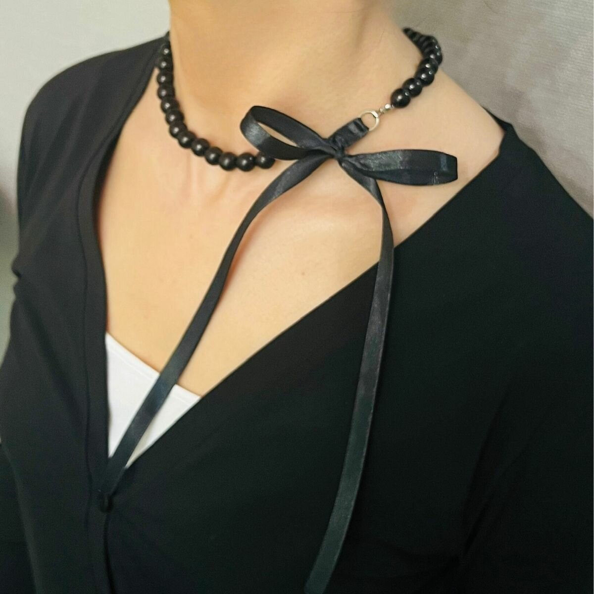 СохранитьЧокер черный жемчуг с черным бантом интересное: