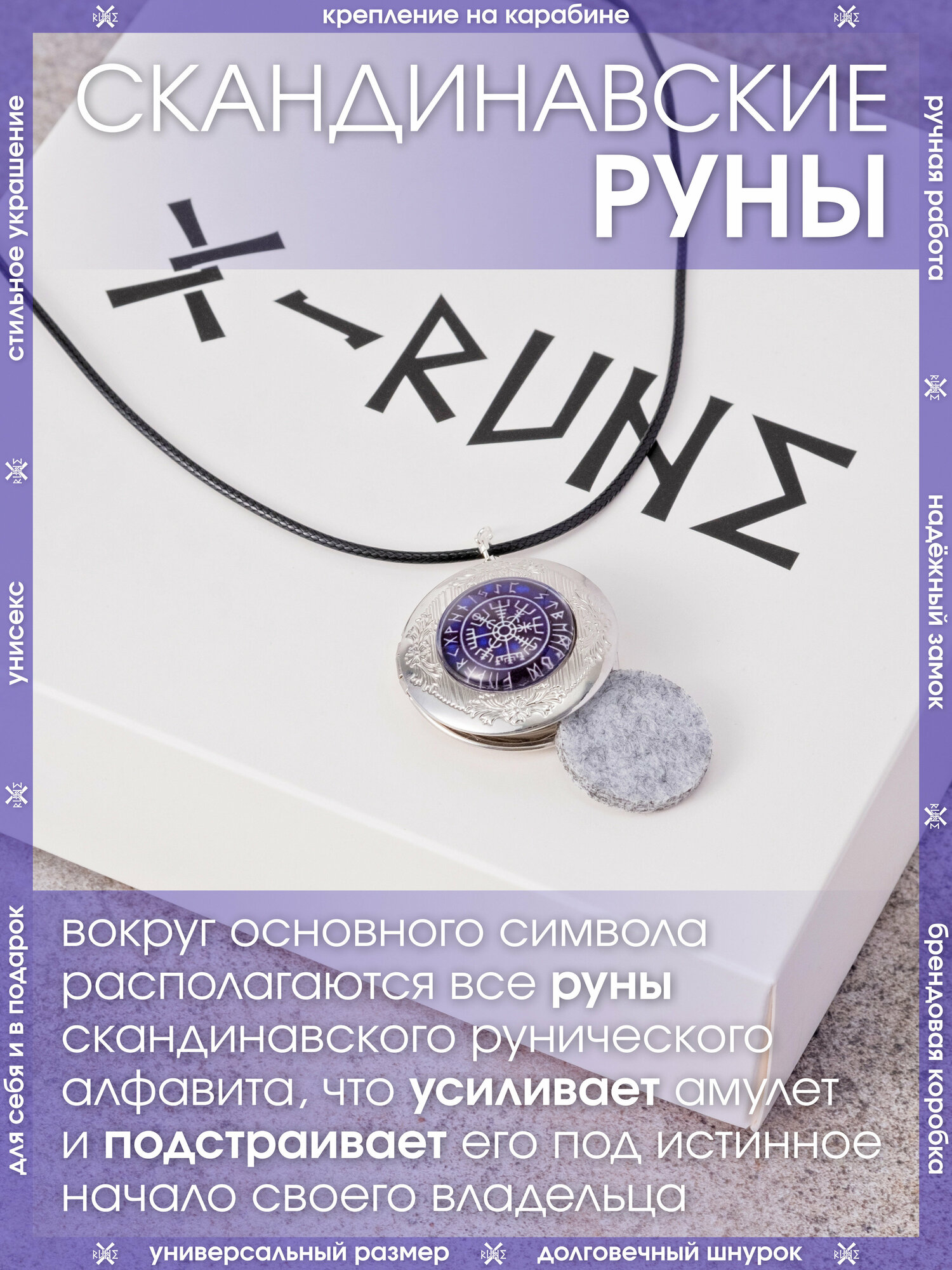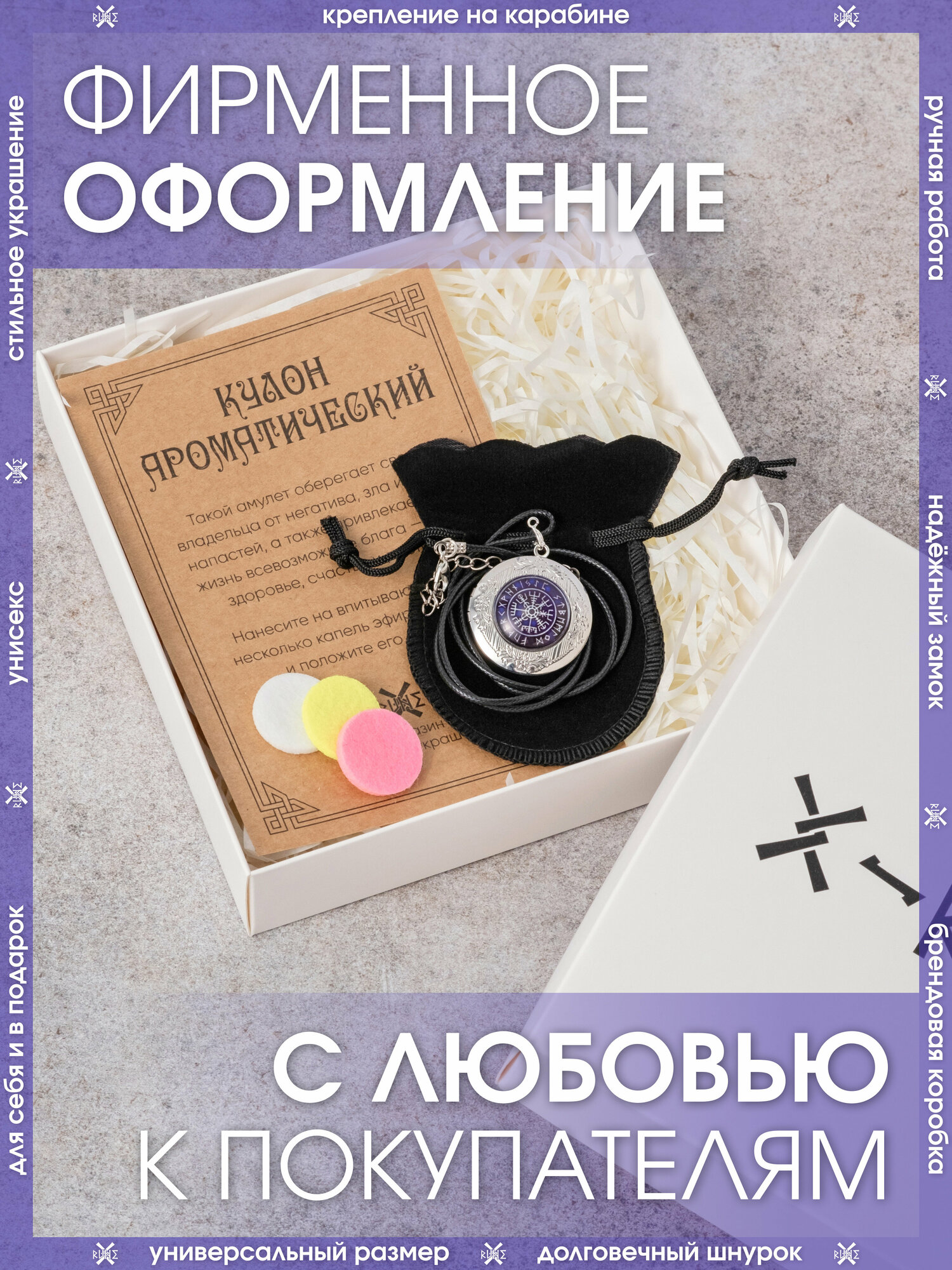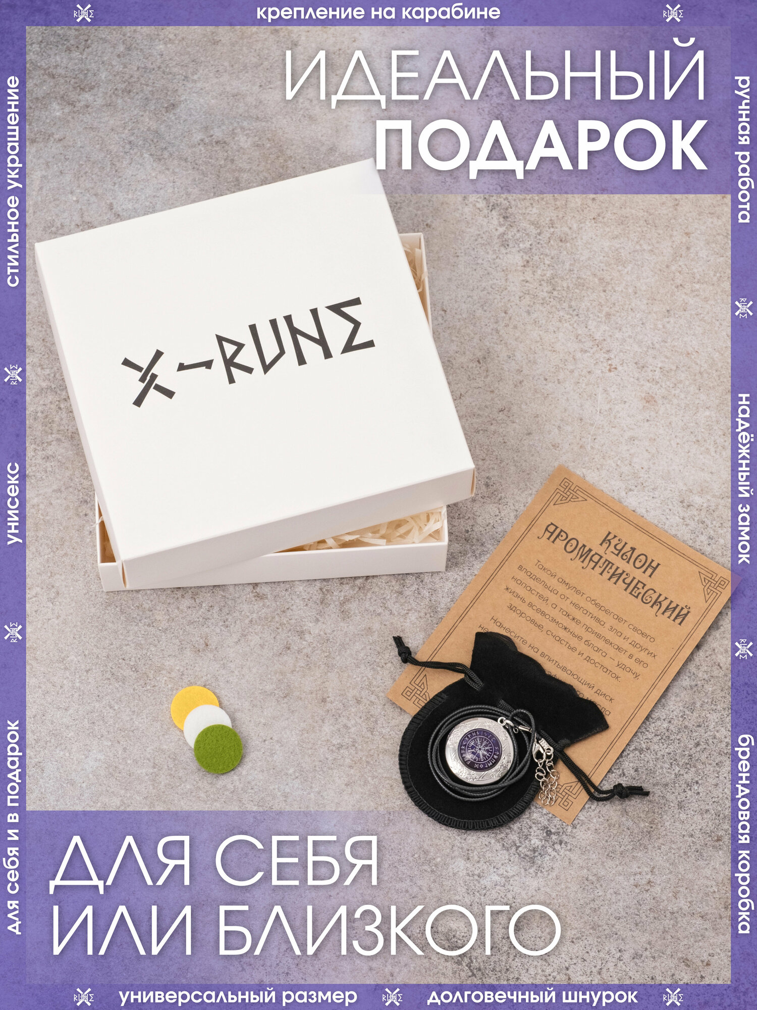 | Комплектация | Кулон – 1 шт., впитывающие диски – 3 шт., мешочек для хранения – 1 шт., аннотация – 1 шт., брендированная коробка X-Rune – 1 шт. |