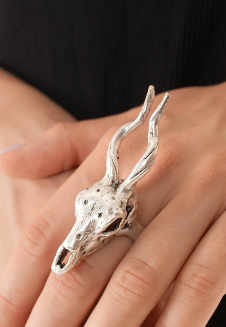 Купить Безразмерное Кольцо Череп (бижутерный сплав, серебристый) 54199