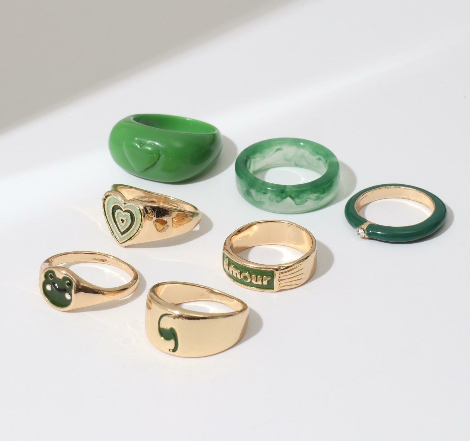 Набор колец 7 штук AMOUR, цвет зелёный в золоте, 16-18 размеры интересное: