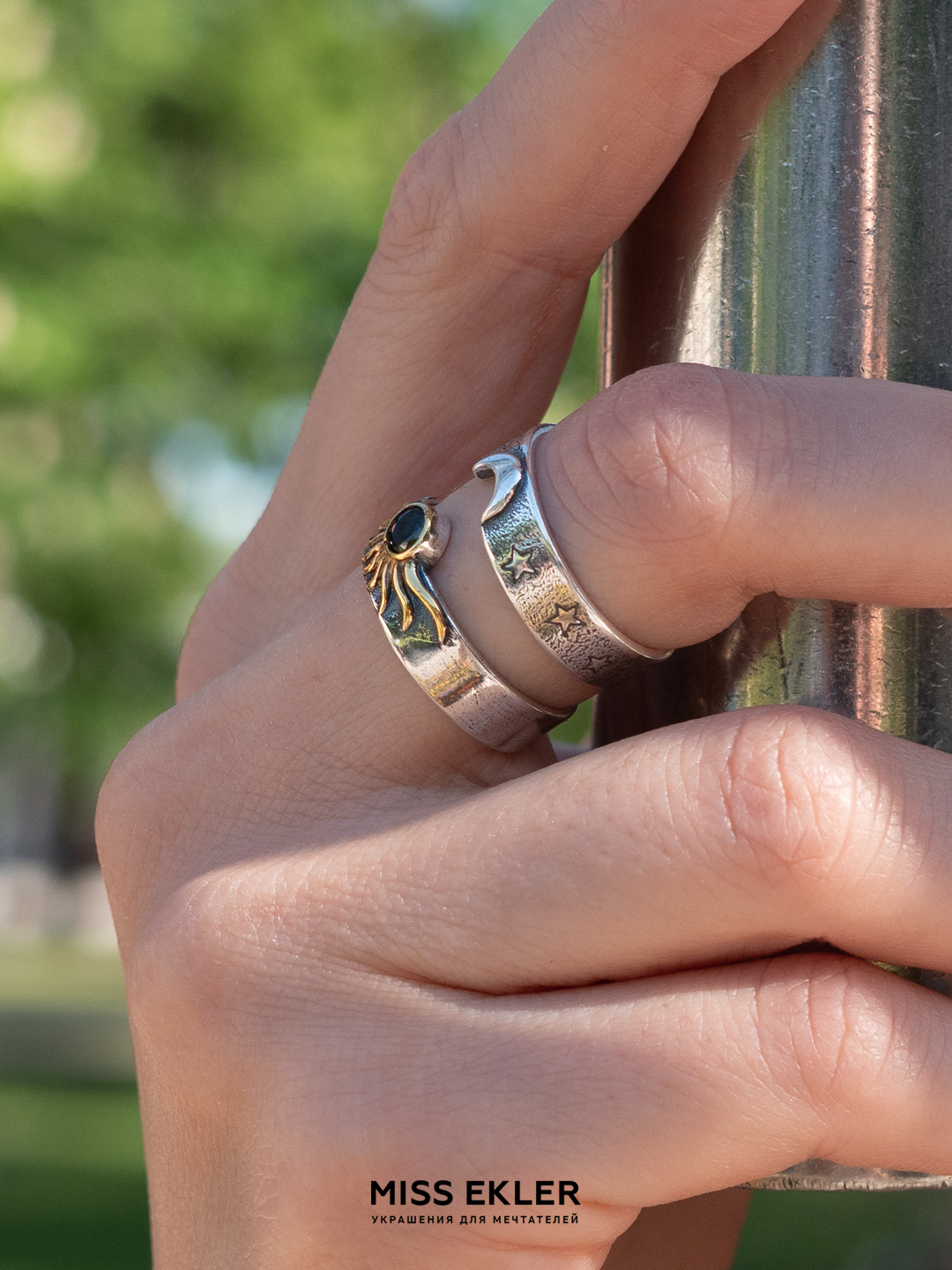 СохранитьПарные кольца Солнце и Луна, Miss Ekler, чёрный фианит, серебрение, размер 20,5 интересное: