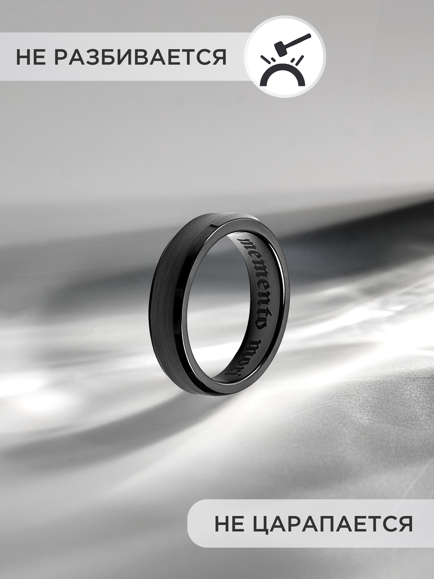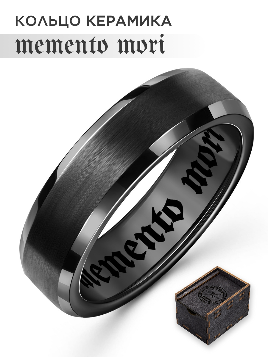 СохранитьКольцо черное из керамики с гравировкой "Memento mori" 21 размер интересное: