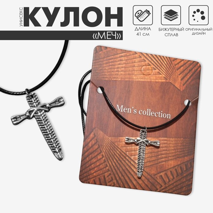 Queen fair Кулон унисекс «Меч» резной, цвет чернёное серебро на чёрном шнурке, 41 см интересное: