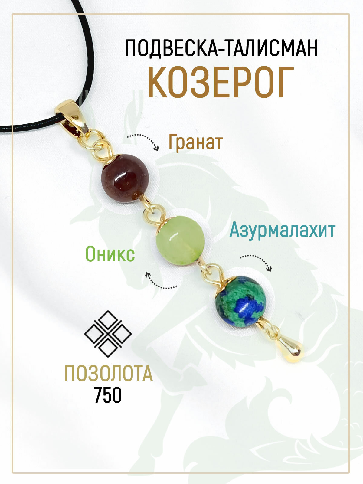 Купить Кулон талисман для Козерога на деньги. Натуральный камень: Гранат, Оникс, Азур малахит