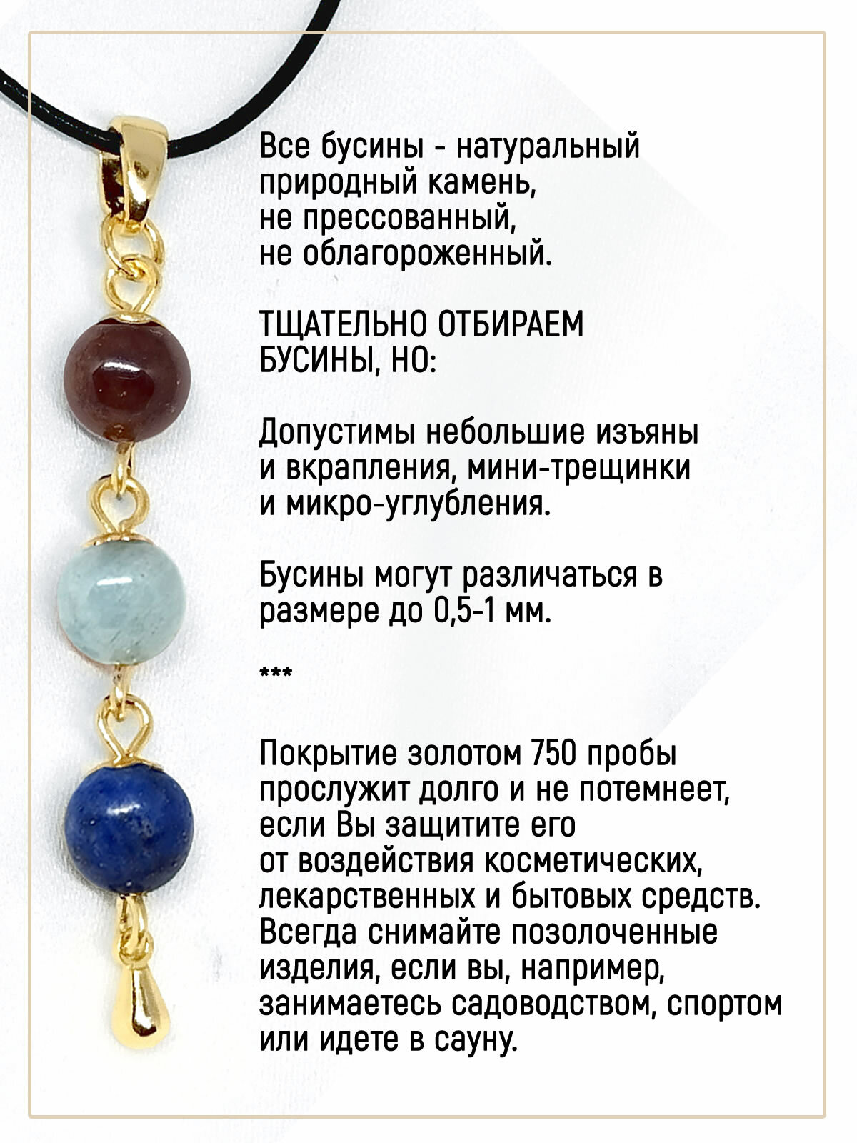 Кулон талисман для Водолея на деньги. Натуральный камень: Гранат, Лазурит, Аквамарин