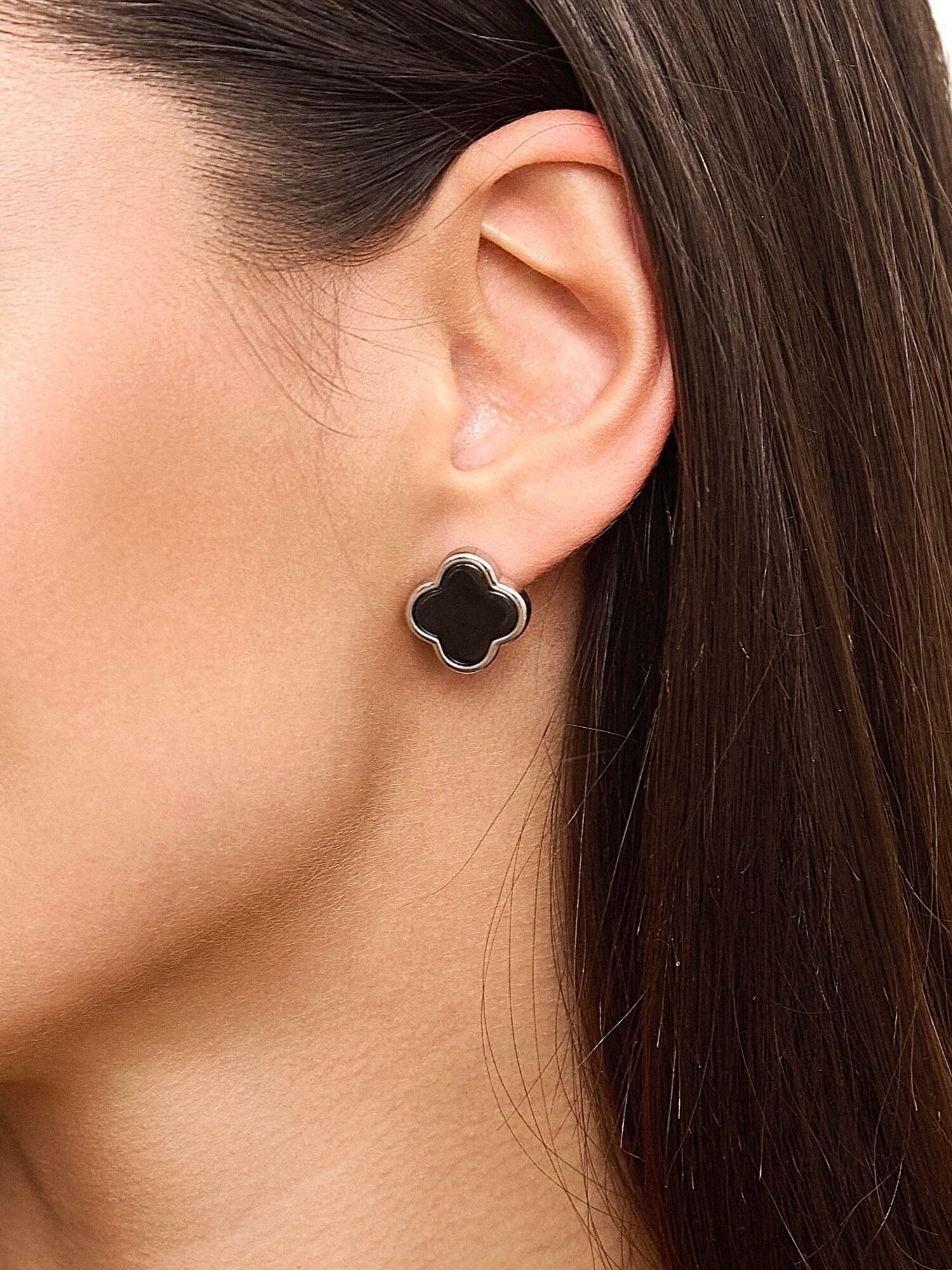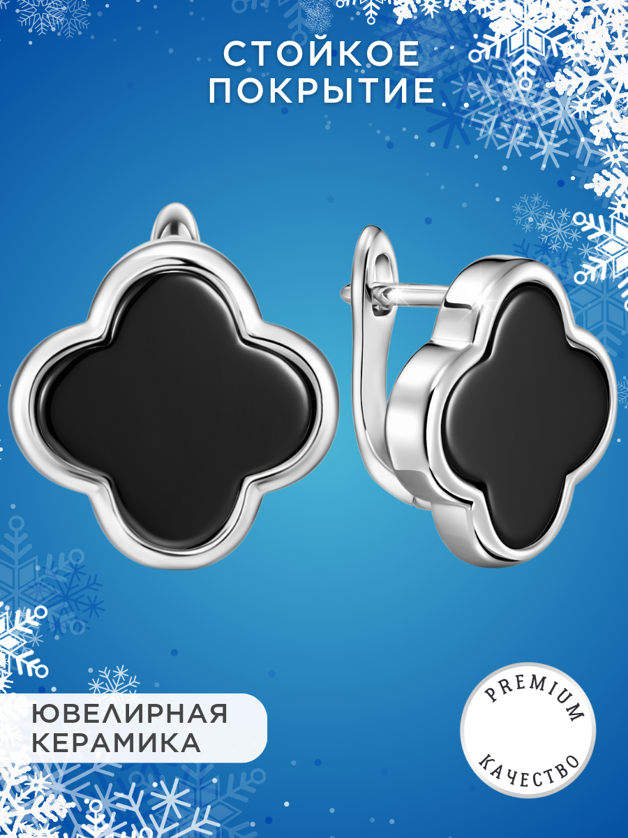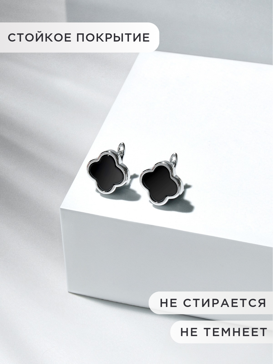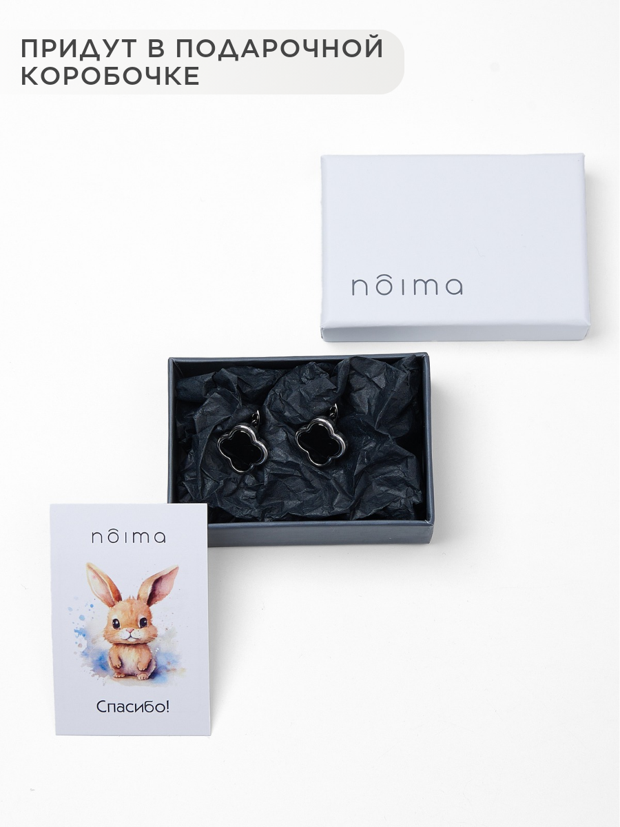 Серьги клевер со вставкой черная керамика NOIMA интересное: