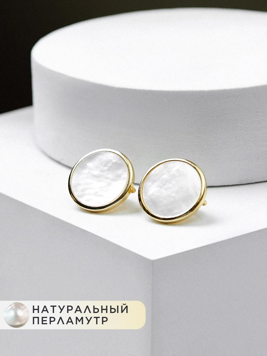 Купить Серьги круглые бижутерия с натуральным перламутром Noima