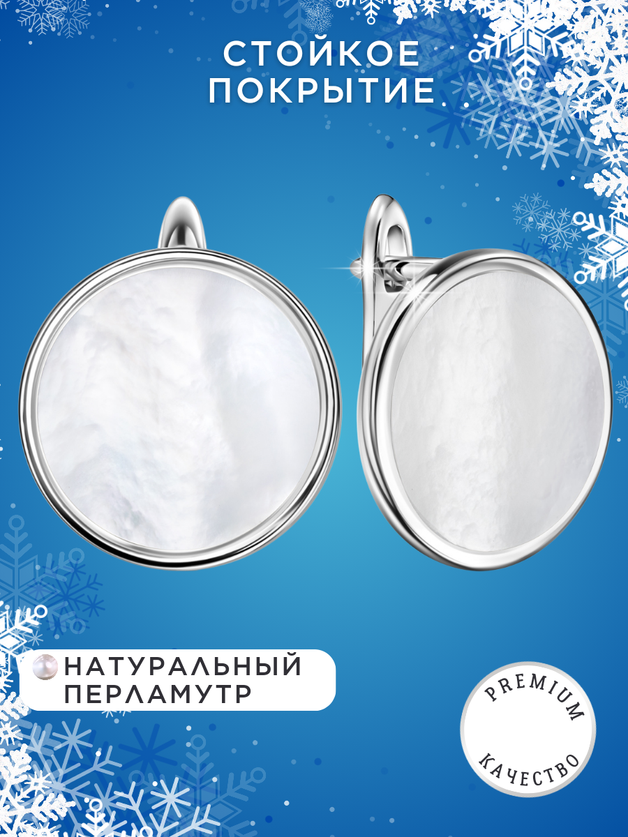 Купить Серьги серебристые круглые бижутерия с натуральным перламутром Noima