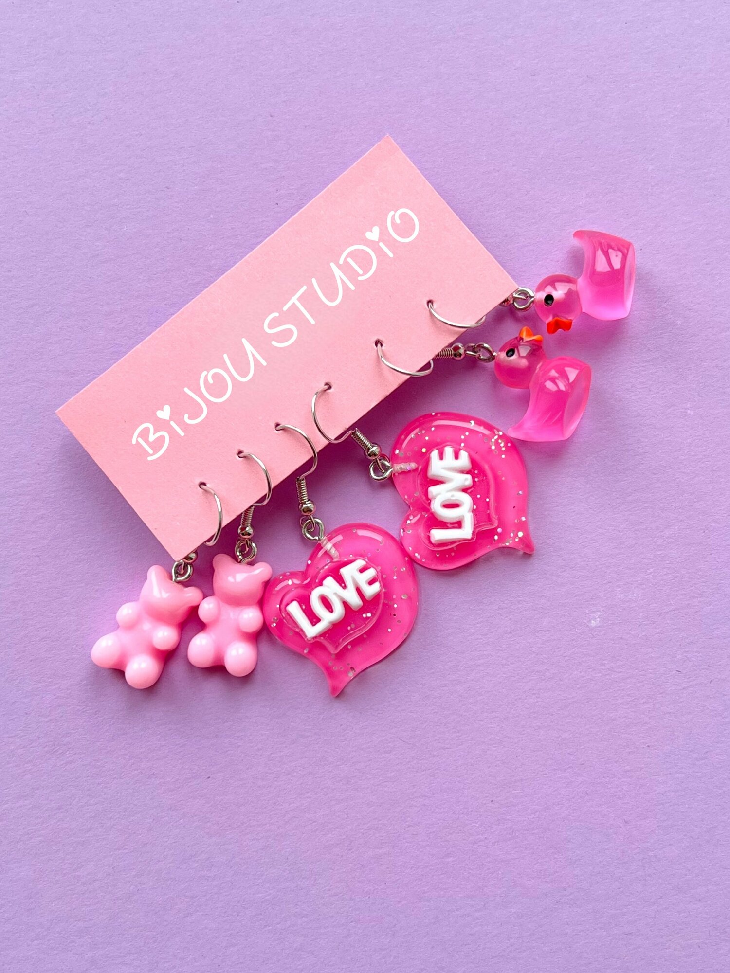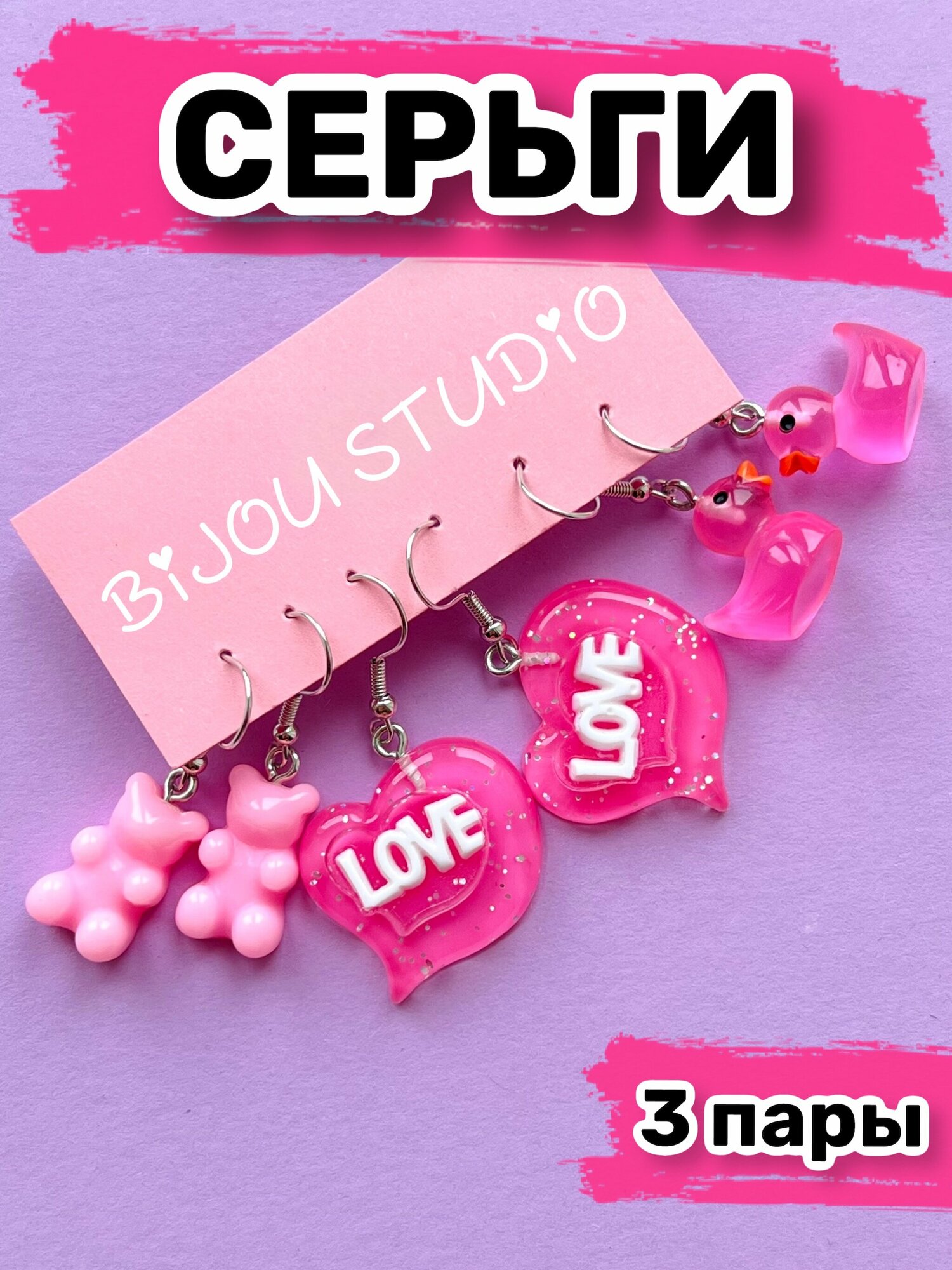 Сережки набор подростковые Серьги бижутерия для девочек Мишки, Эскимо